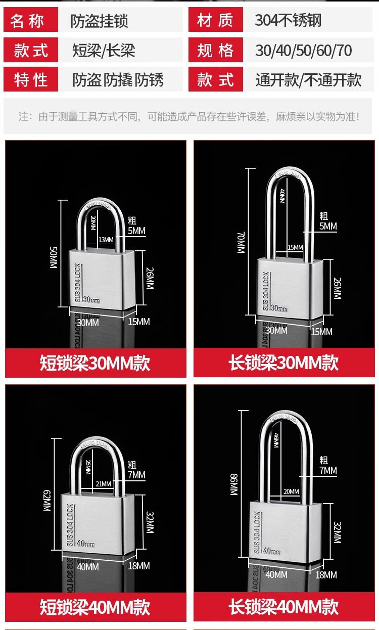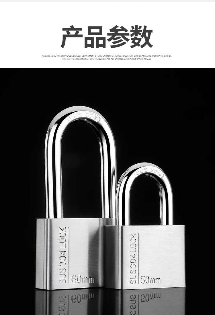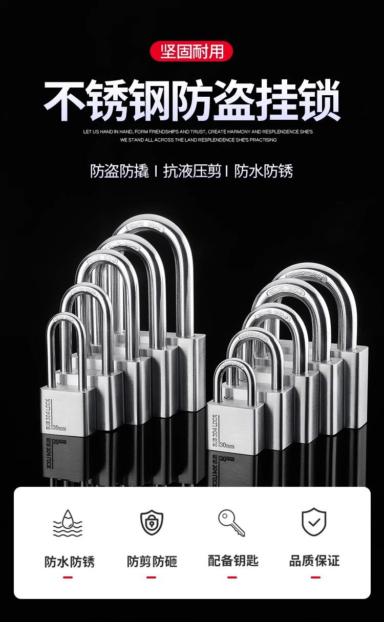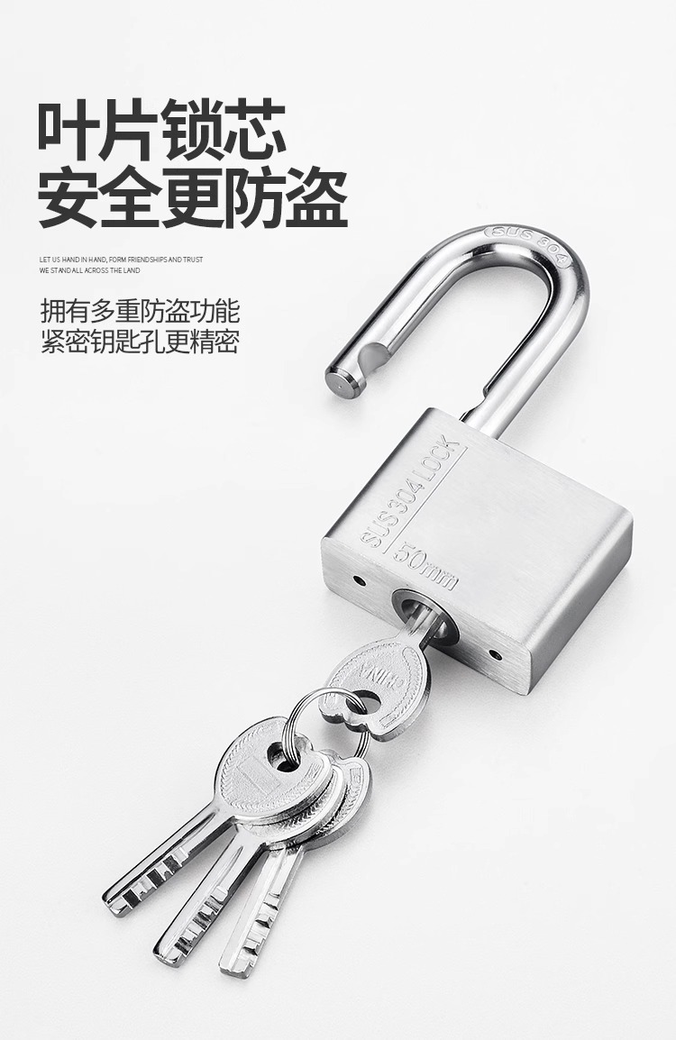 不锈钢304挂锁大门锁家用卧室锁学生宿舍柜子锁防水防锈户外锁