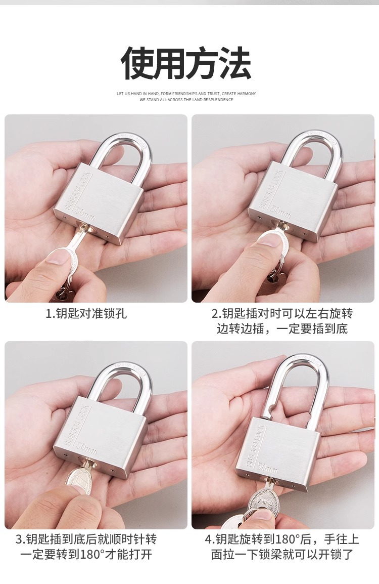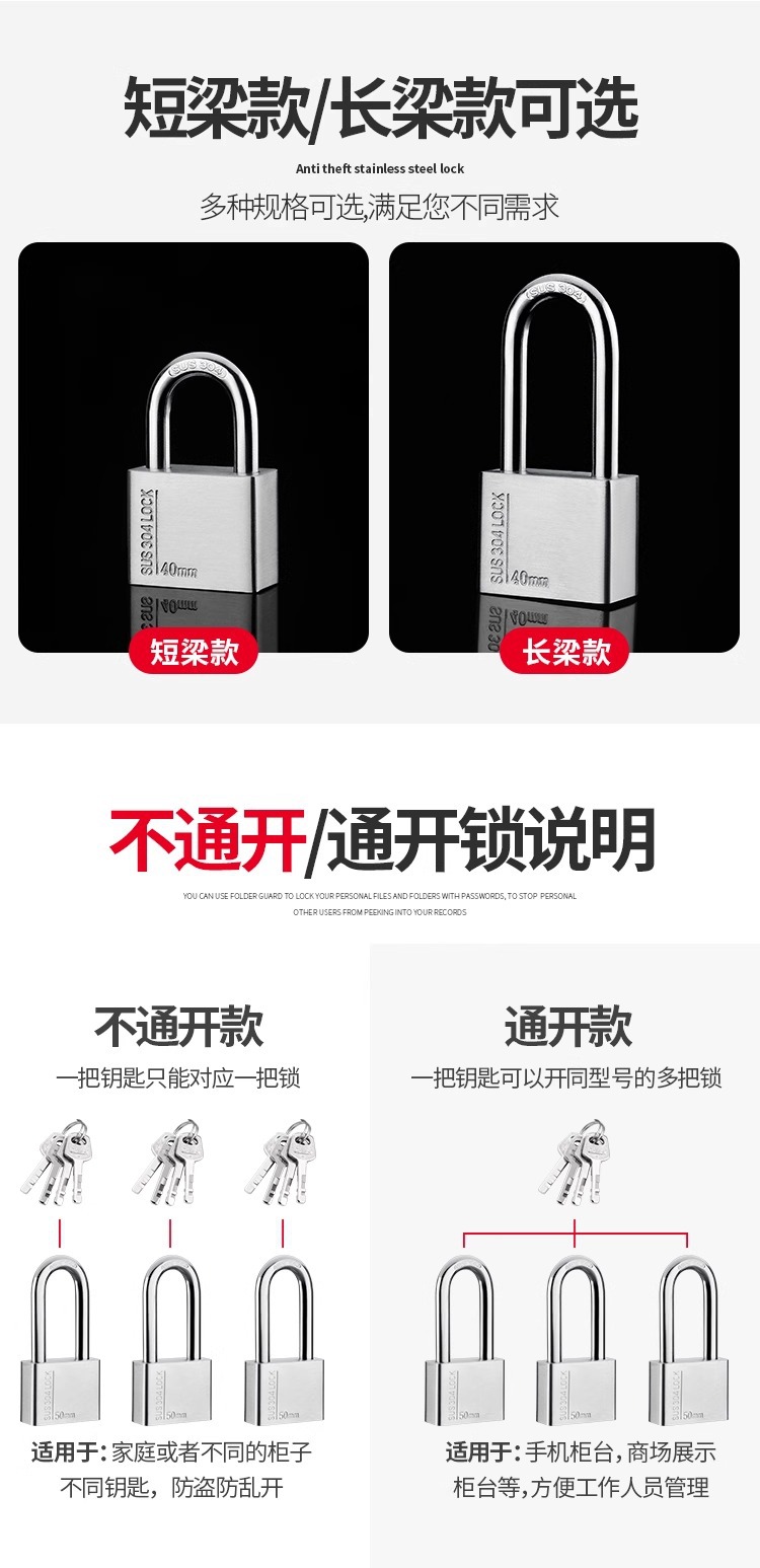 挂锁通开锁通用锁具门锁不锈钢锁子宿舍柜子一把钥匙开多小号锁头