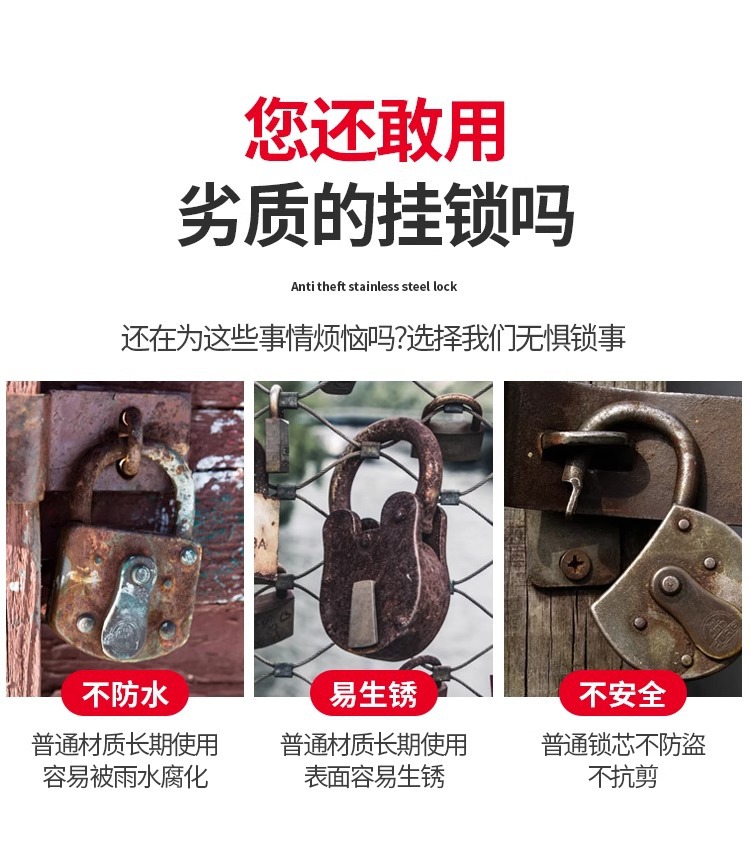 不锈钢挂锁家用防水防锈大门锁防盗锁头户外锁具门防撬仓库锁