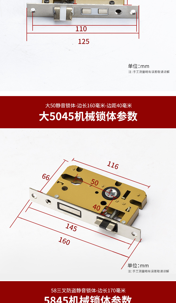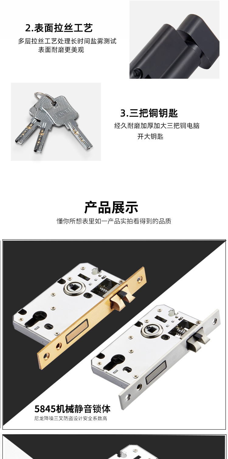 全鋼大50錠体5045鋼面鋼舌錠体寝室共通型室内木製ドア錠体寝室ドア錠体