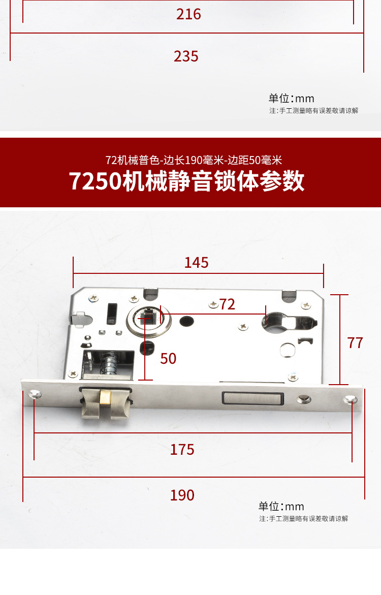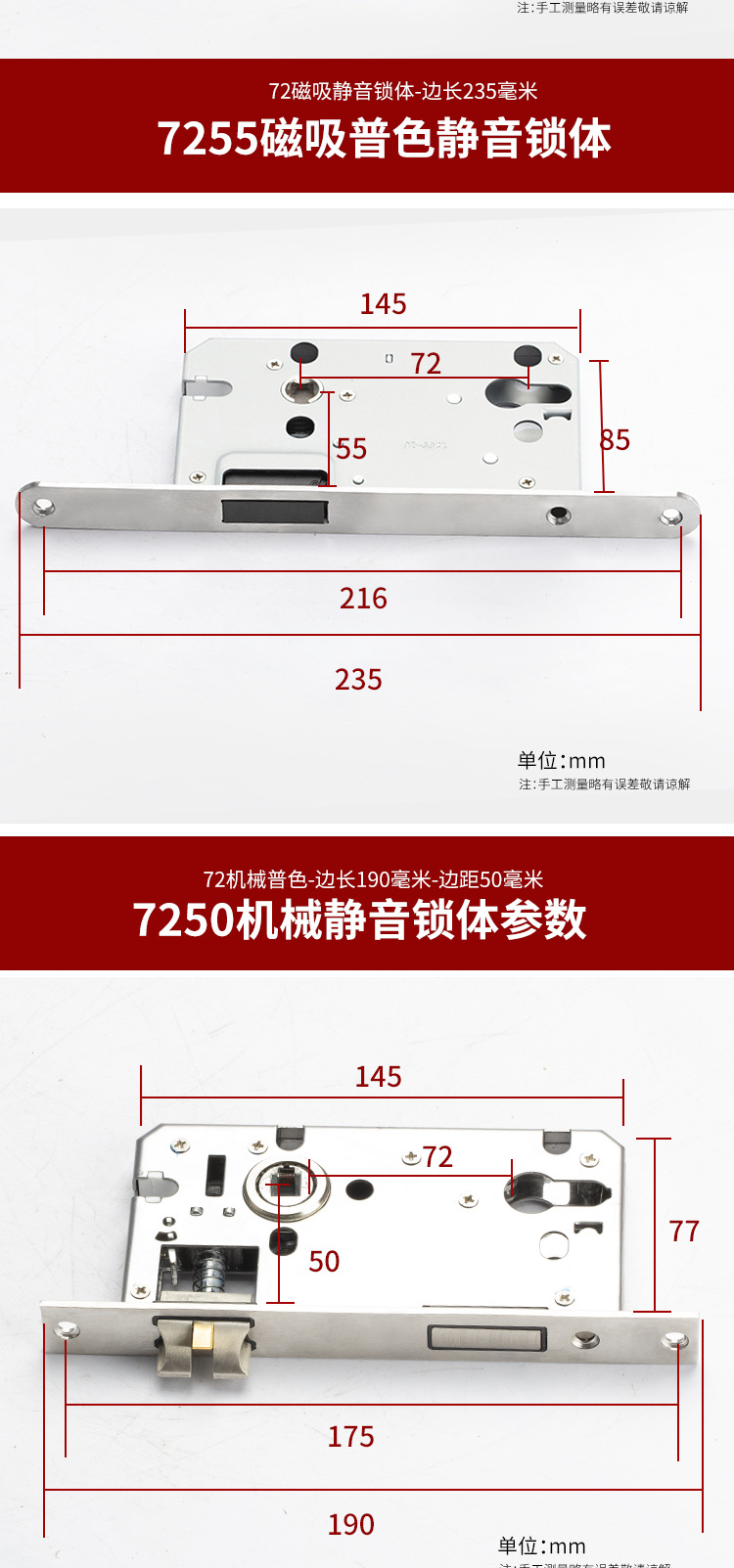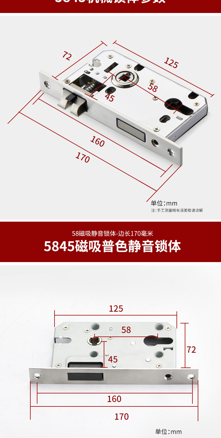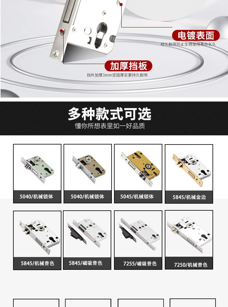 7255静音室内门锁体锁具5045/5845磁吸锁体配5572锁体室内房门锁