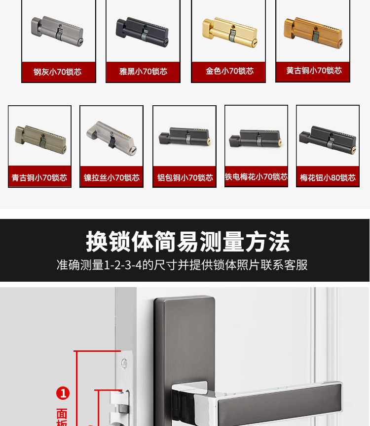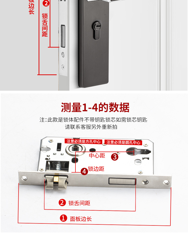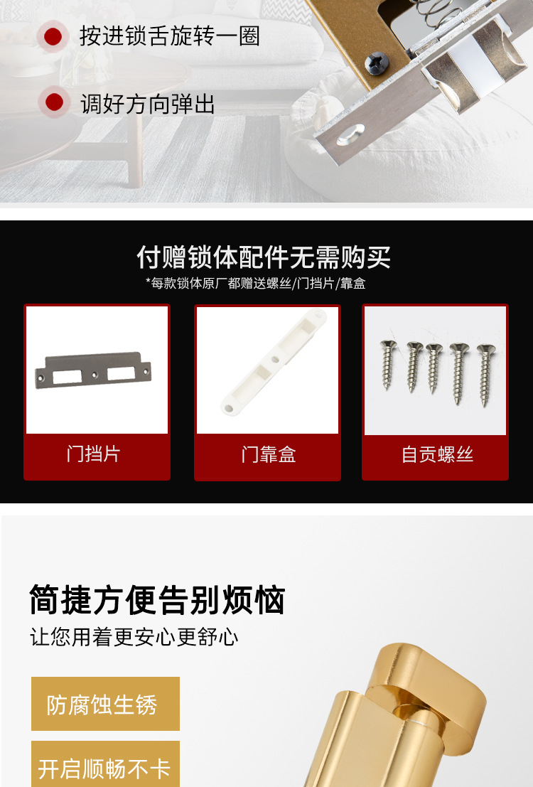 室内共通型木戸ロック体小50大50大58大家庭用寝室静音ロックステンレスロック体ロック芯