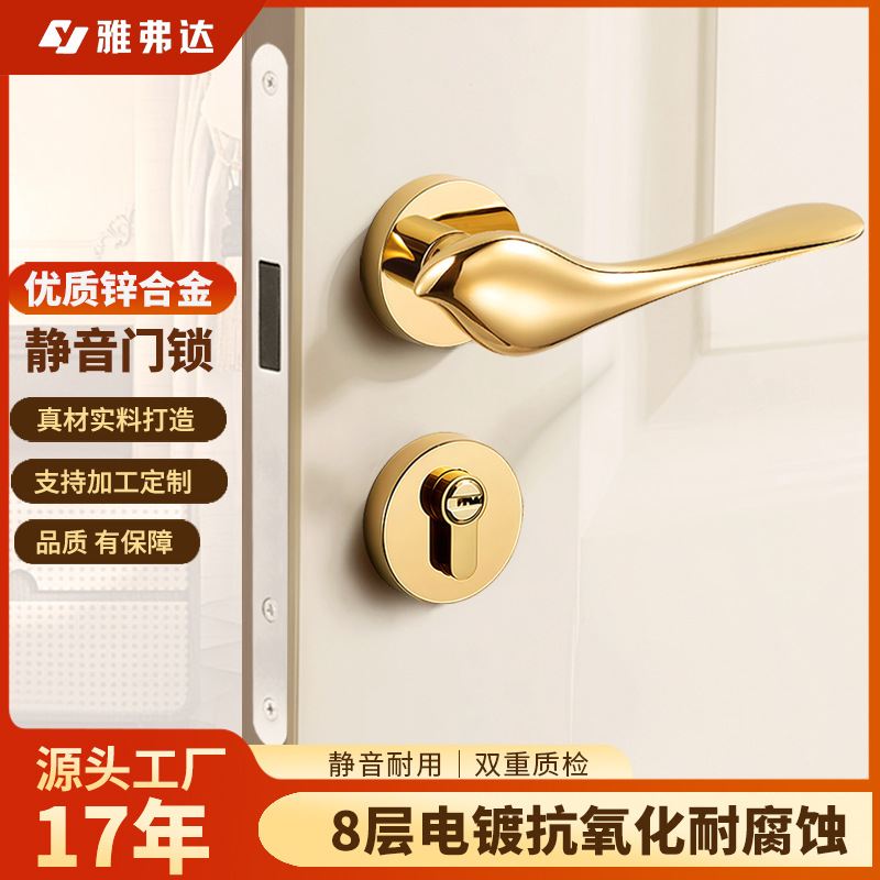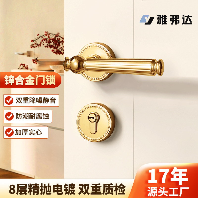 フレンチレトロ寝室ドアロック亜鉛合金木製ドア屋内分割ロック家庭用サイレント磁気ユニバーサルロック
