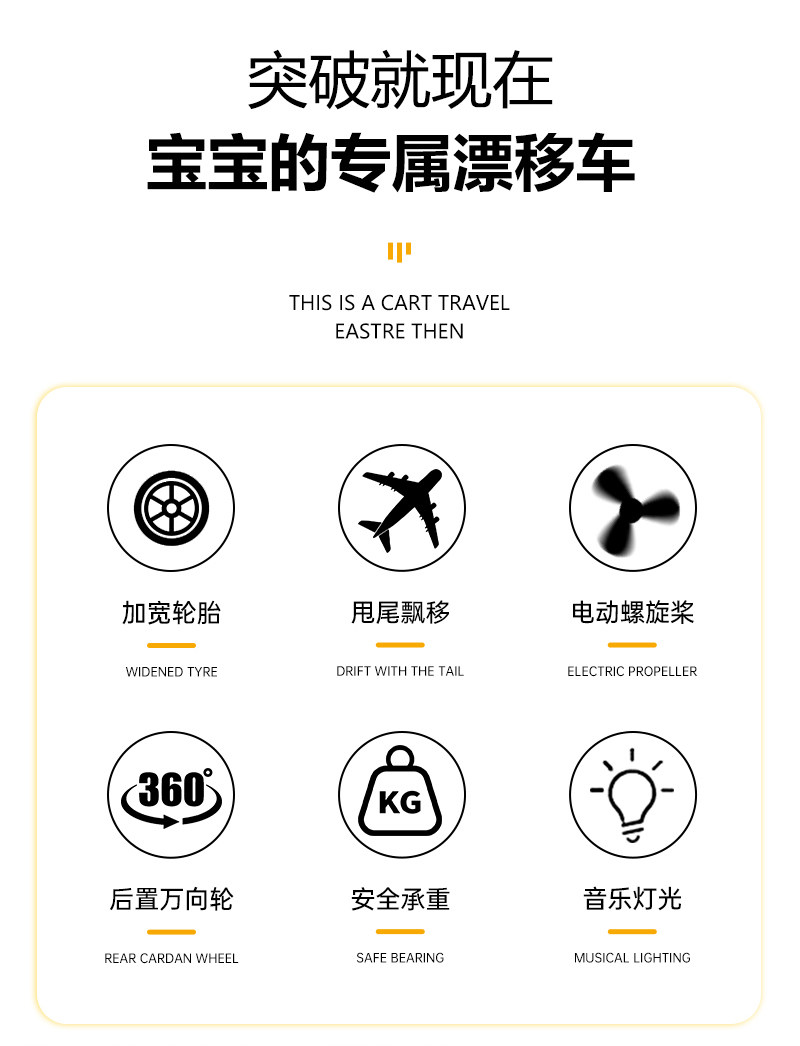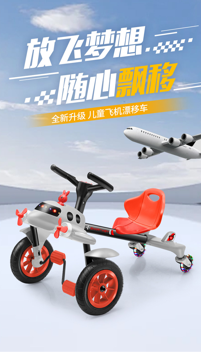 サム子供用飛行機型ドリフトカー自転車ベビー抖音同型雷戦車スライドカー静音ゴム車輪