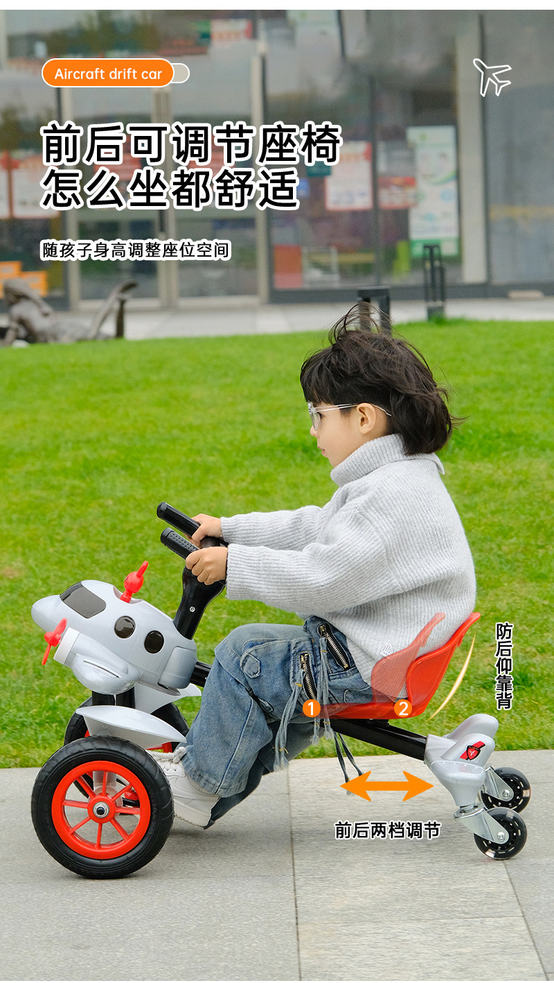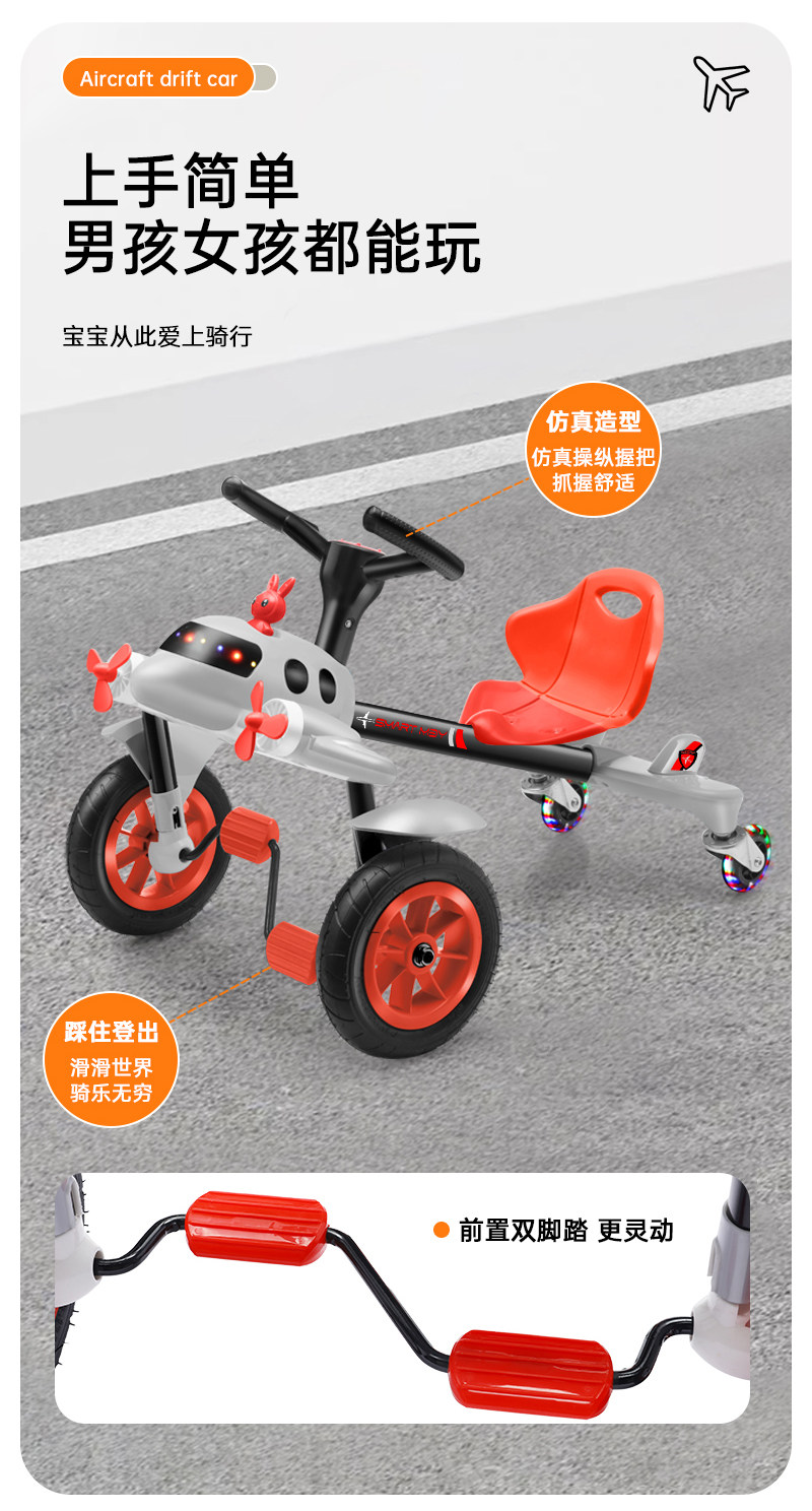 子供用ドリフトカー、ベビー三輪車、飛行機型カート、子供用スライドカー、テールスイング付き足踏み玩具