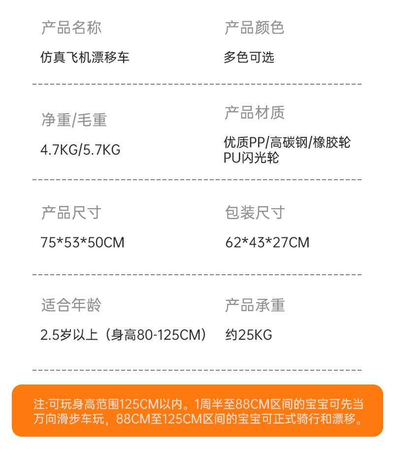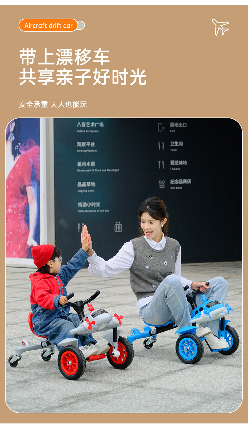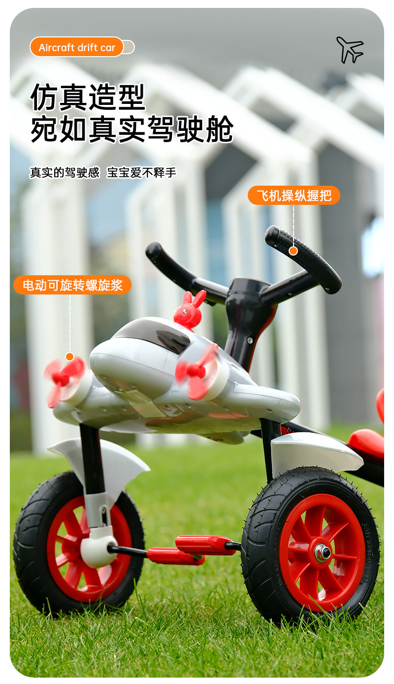 儿童漂移车小飞机四轮脚踏车三轮车360旋转滑行车广场玩具漂移车