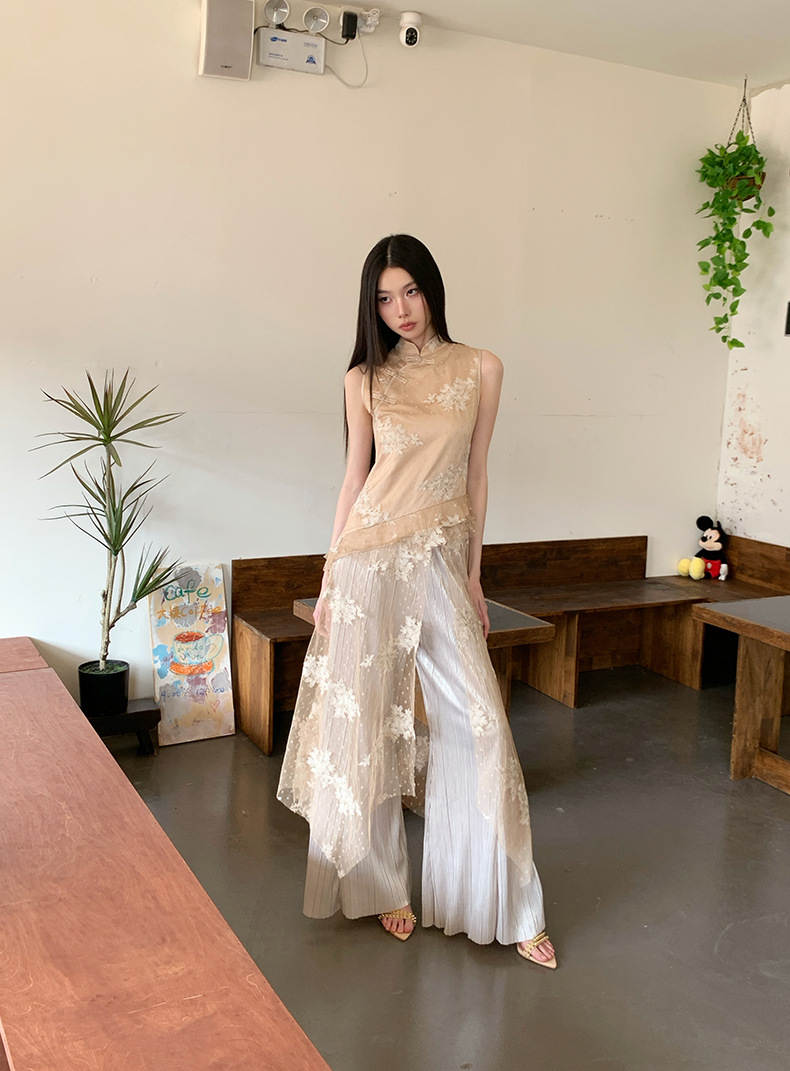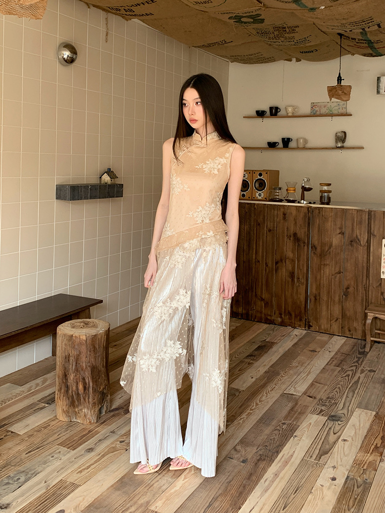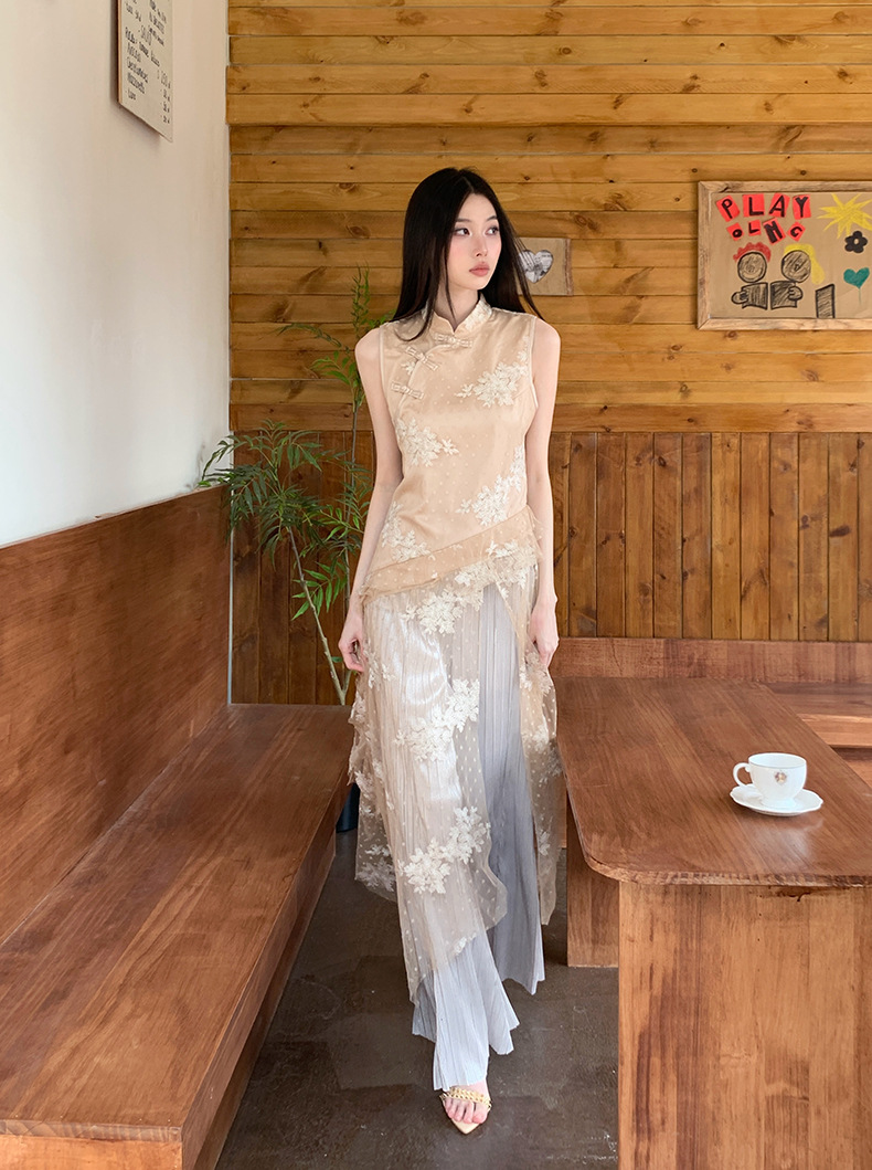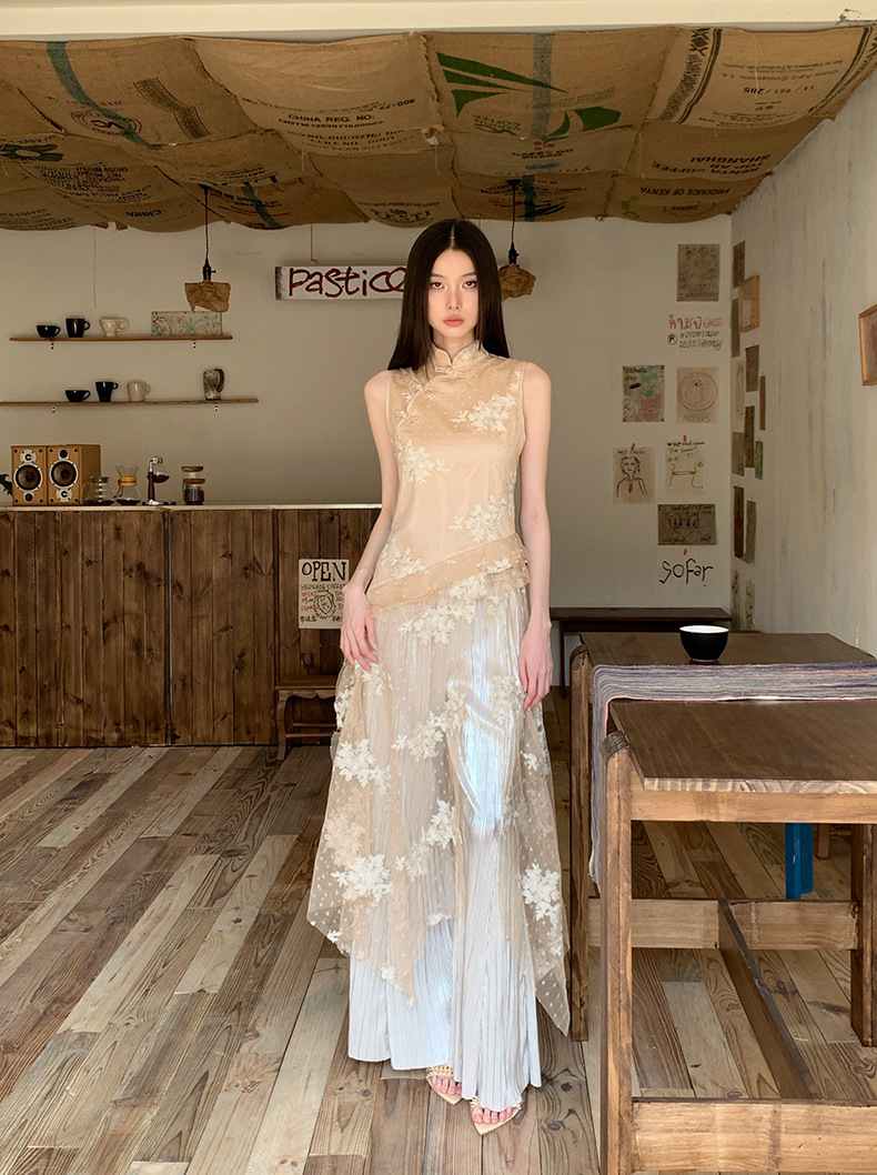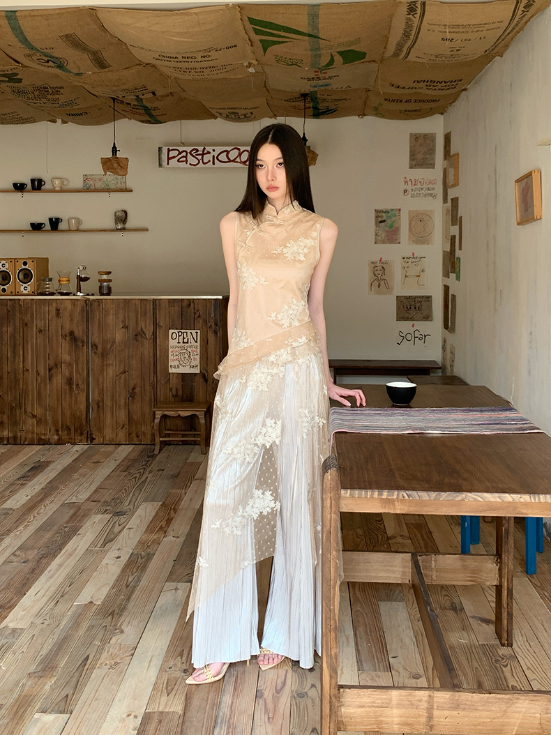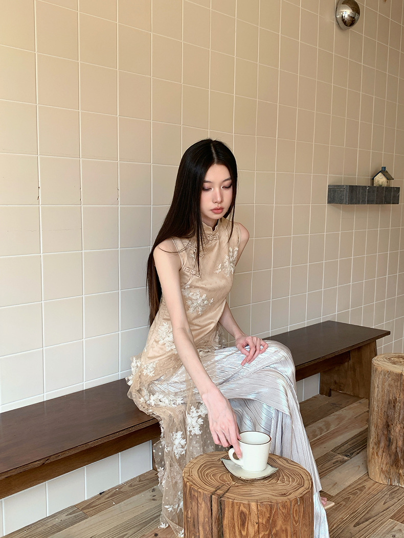 新中国式アンドロメダ開叉不規則網糸チャイナドレス