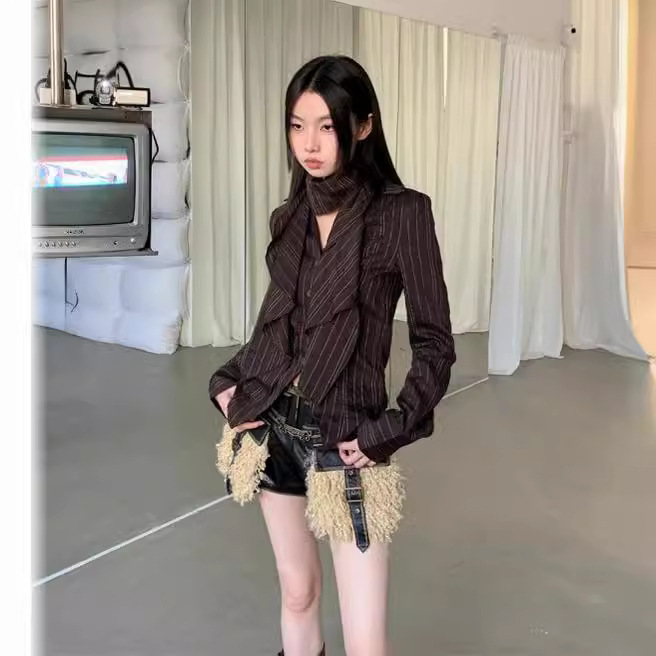 レディース新作デザインスカーフ付き長袖ウエストシェイプシャツインナーブラウス