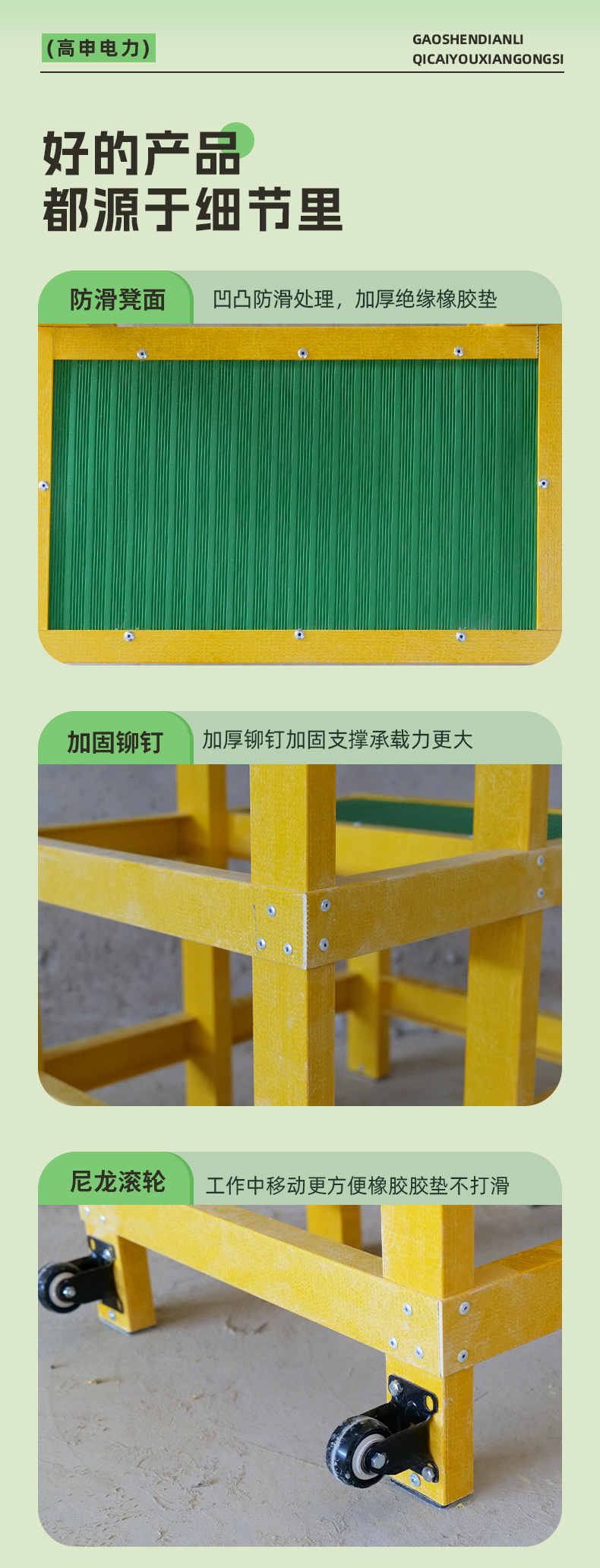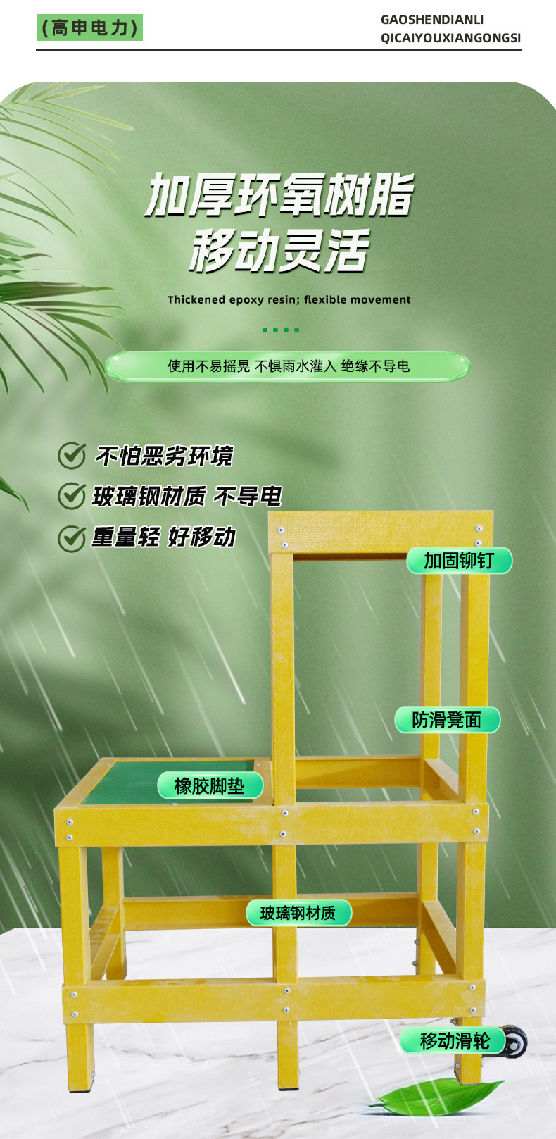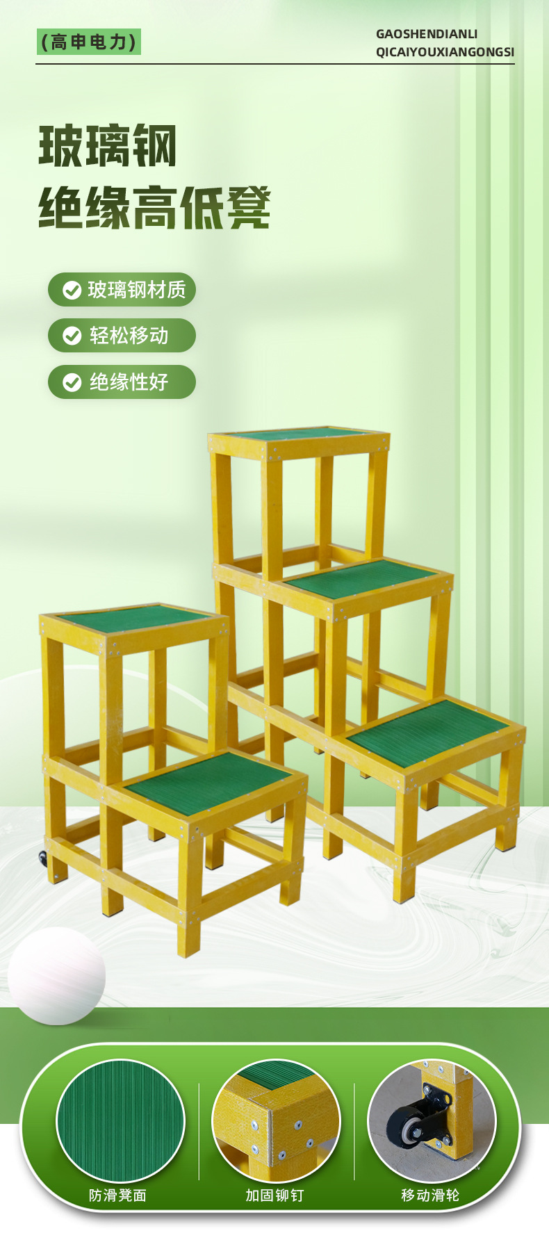 卸売絶縁高低スツールグラスファイバー電気技師高所作業プラットフォーム二層三層車輪付き可動絶縁スツールステップ