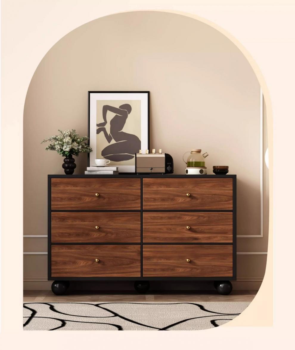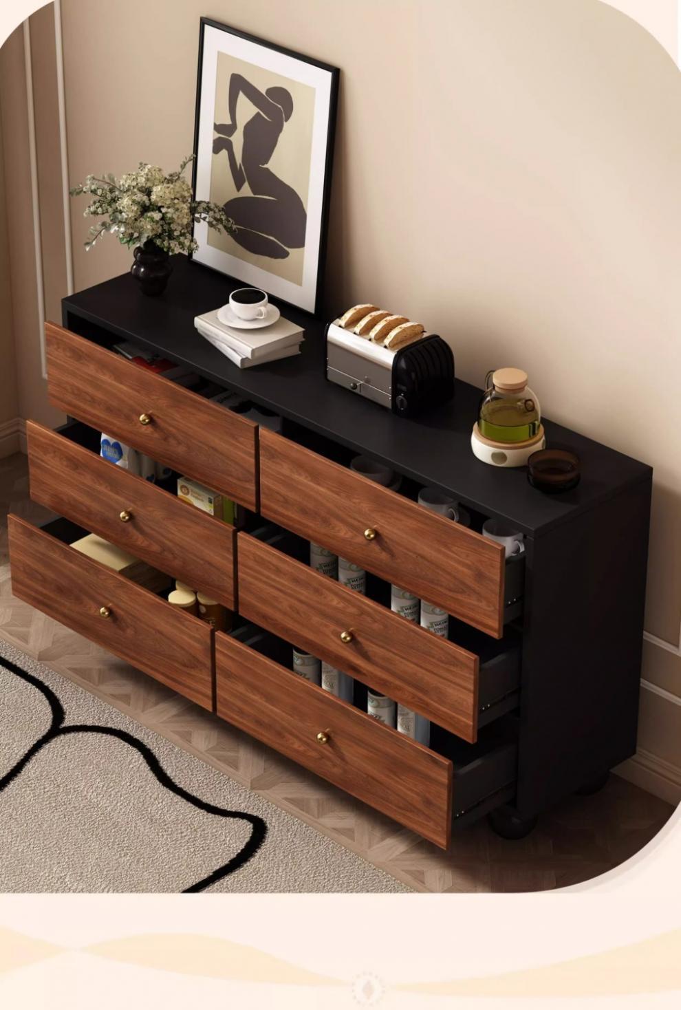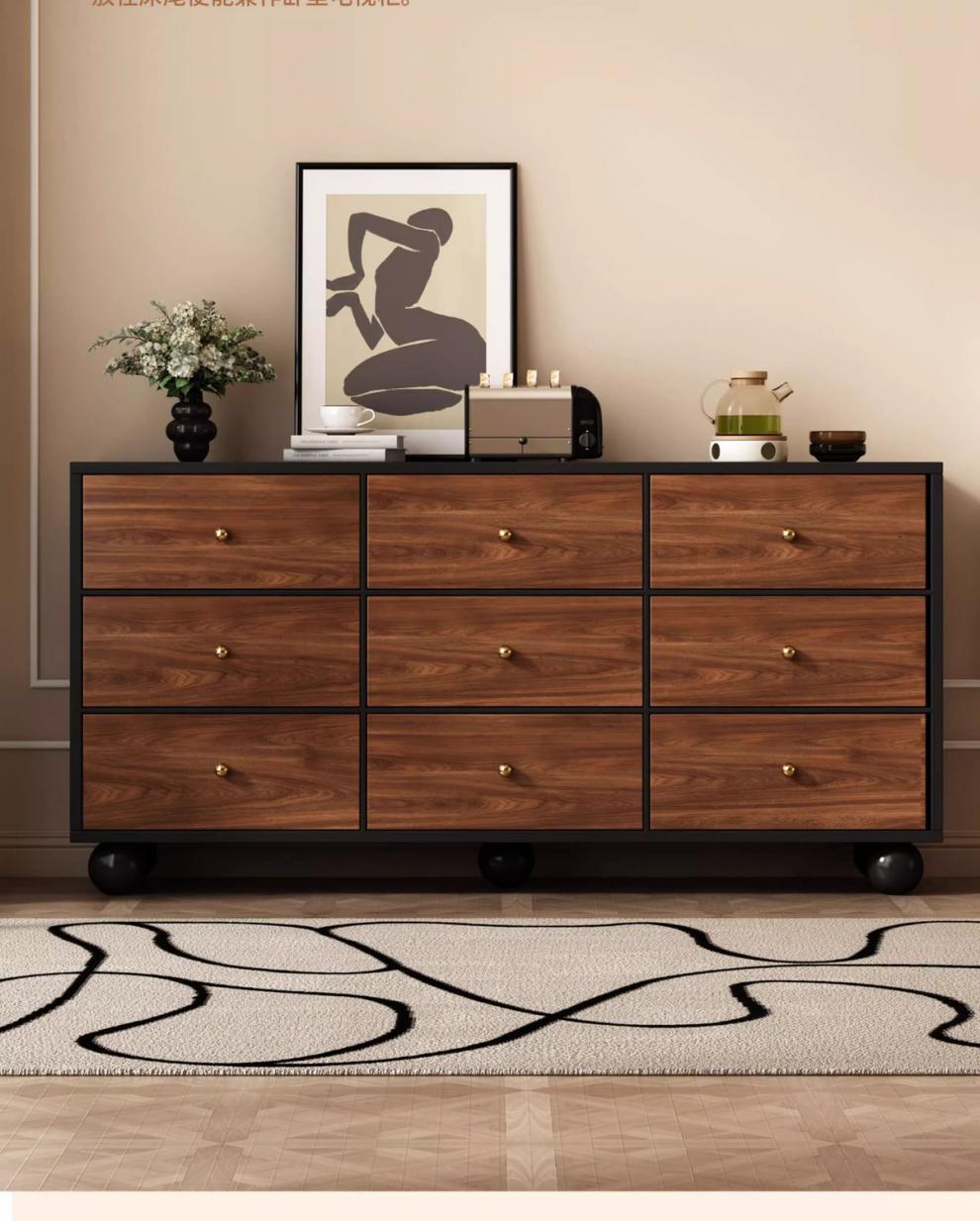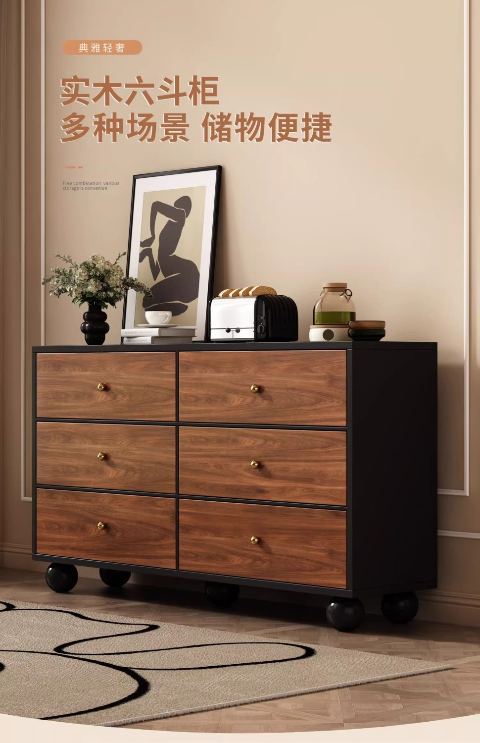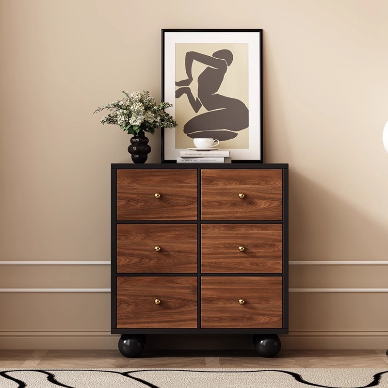 中世スタイルの引き出しキャビネット、5つの引き出しキャビネット、寝室の収納キャビネット、無垢材のベッドサイドキャビネット、収納キャビネット、壁に一体化された5つの引き出しキャビネット