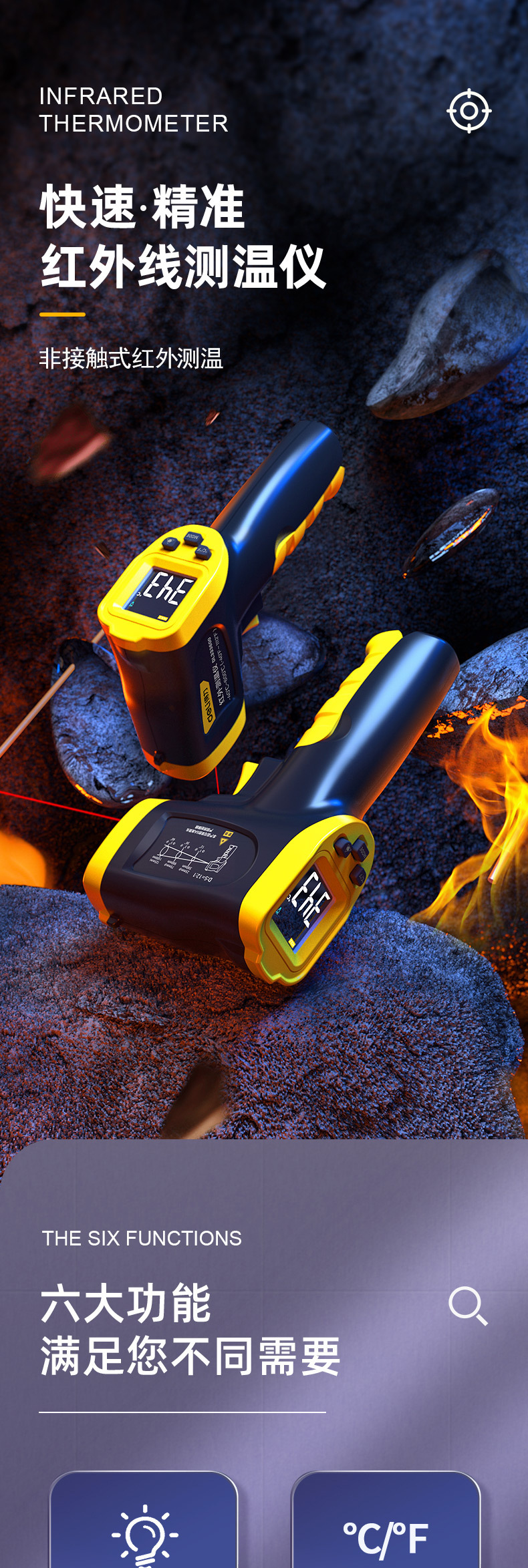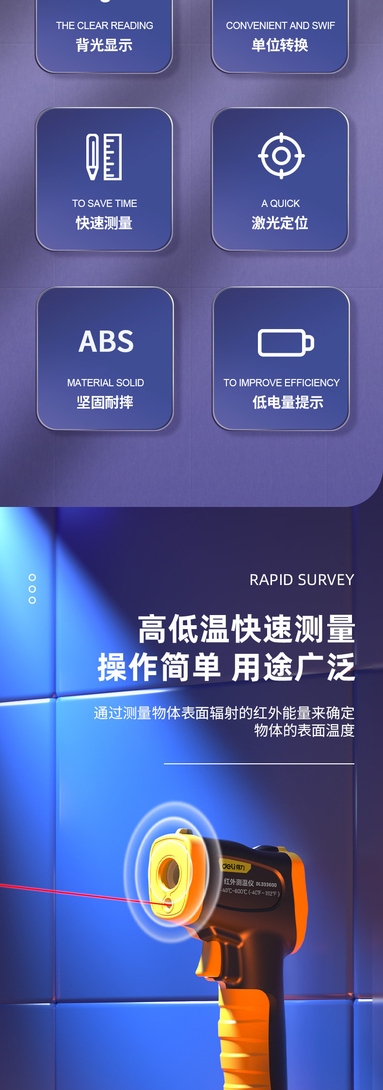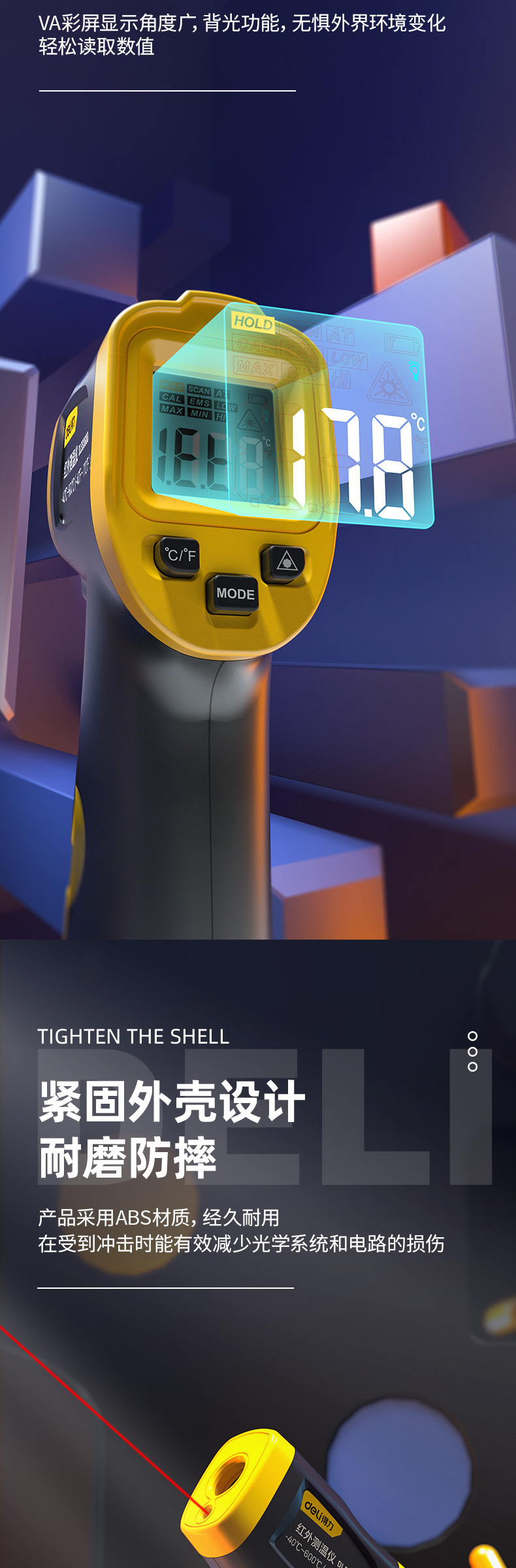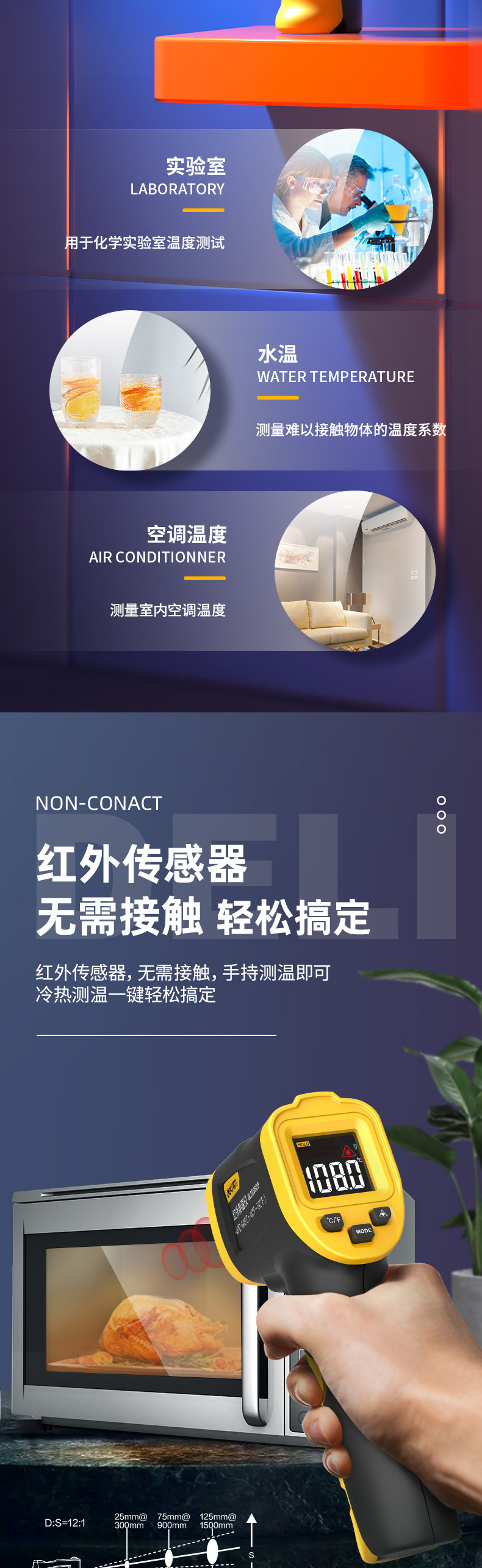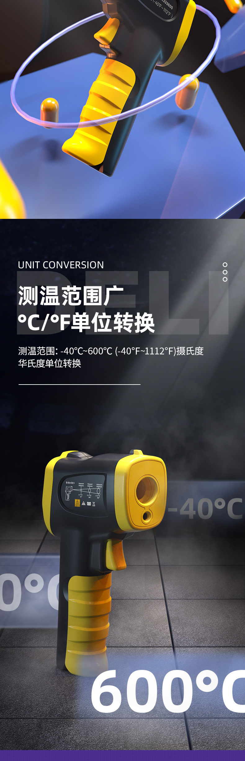デリ DL333600 赤外線温度計非接触誘導温度計ガン工業用屋内電子温度計