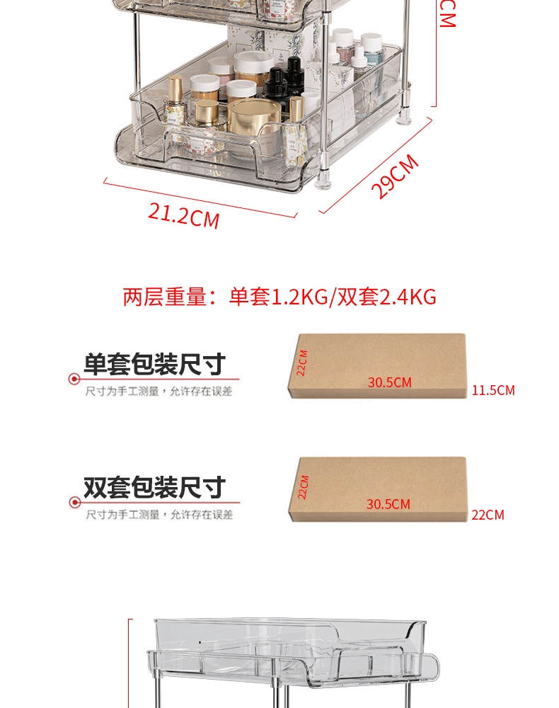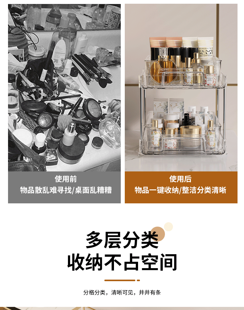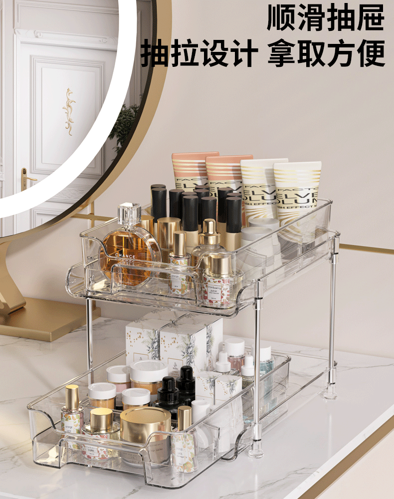 化粧品収納ボックスPET収納棚多層二層三層引き出し透明スキンケア用品収納ボックス