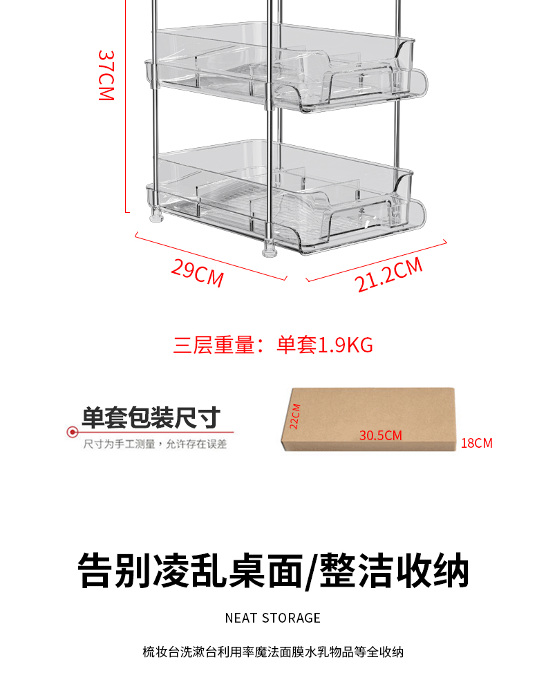 PET透明化粧品収纳ボックス引き出し式ルームスキンケア制品キッチン収纳ラックデスクトップ整理物置ラック