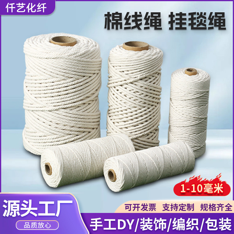 白綿糸 1-10 ミリメートル綿ロープ卸売ロープタペストリーロープパッケージ団子糸タグロープバンドル装飾ロープ