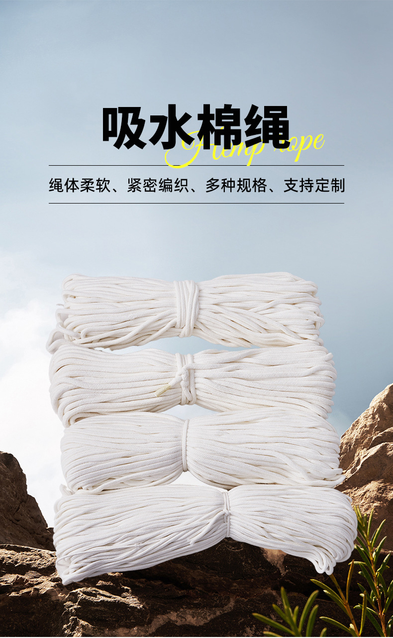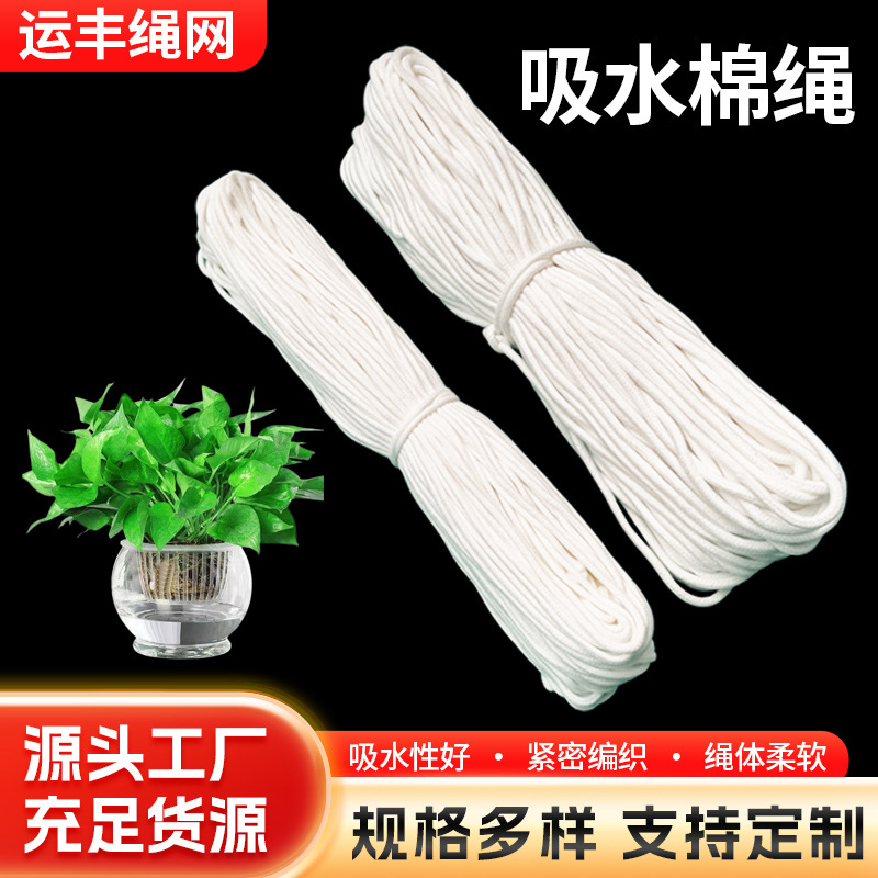 厂家自吸水棉绳跨境白色包芯棉绳水培懒人花盆养花绿萝盆栽自吸水