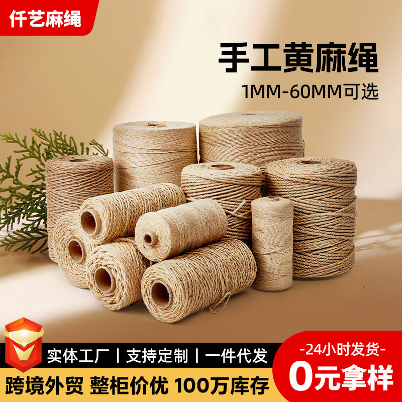 太い麻縄、クロスボーダーDIY手作りアクセサリー、衣類加工タグ、フォトウォール編み、レトロなジュート縄1MM