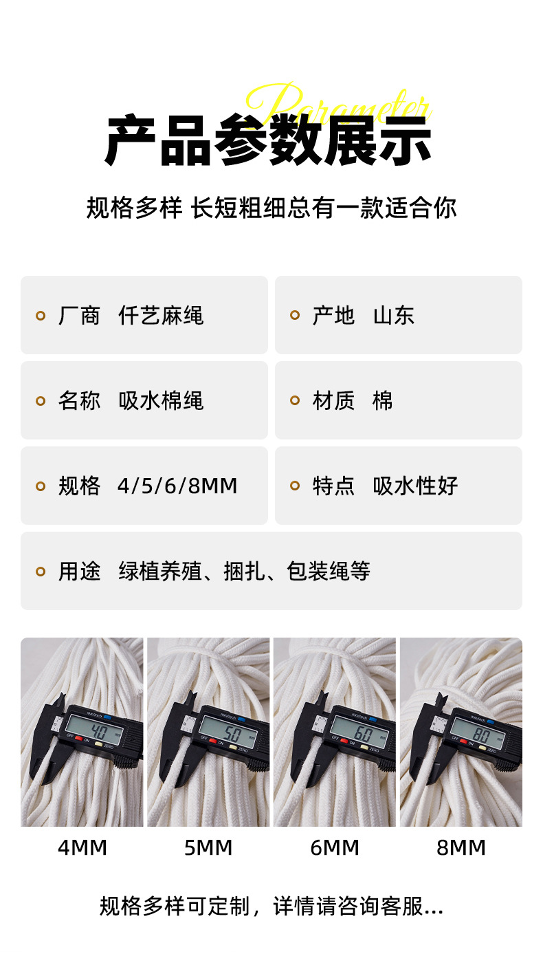 吸水綿ロープクロスボーダーホワイトコア入り綿ロープ水耕栽培自吸式怠惰な植木鉢ポトスタペストリーロープ鉢植え綿ロープ