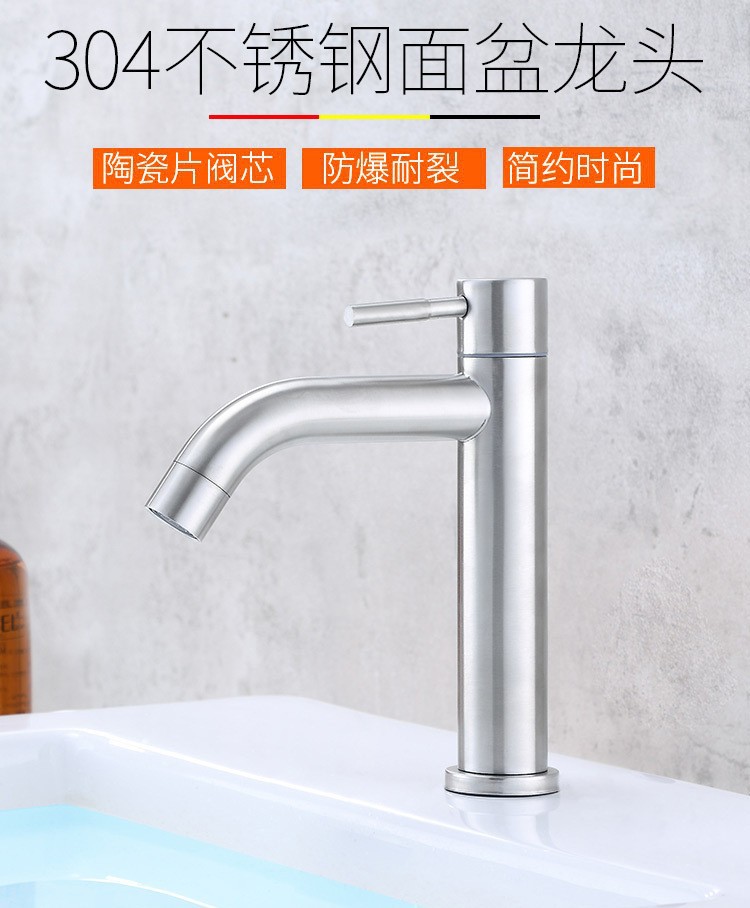 クロスボーダーシングル冷水蛇口ステンレス鋼高級304洗面台蛇口バスルームカウンター洗面台洗面台