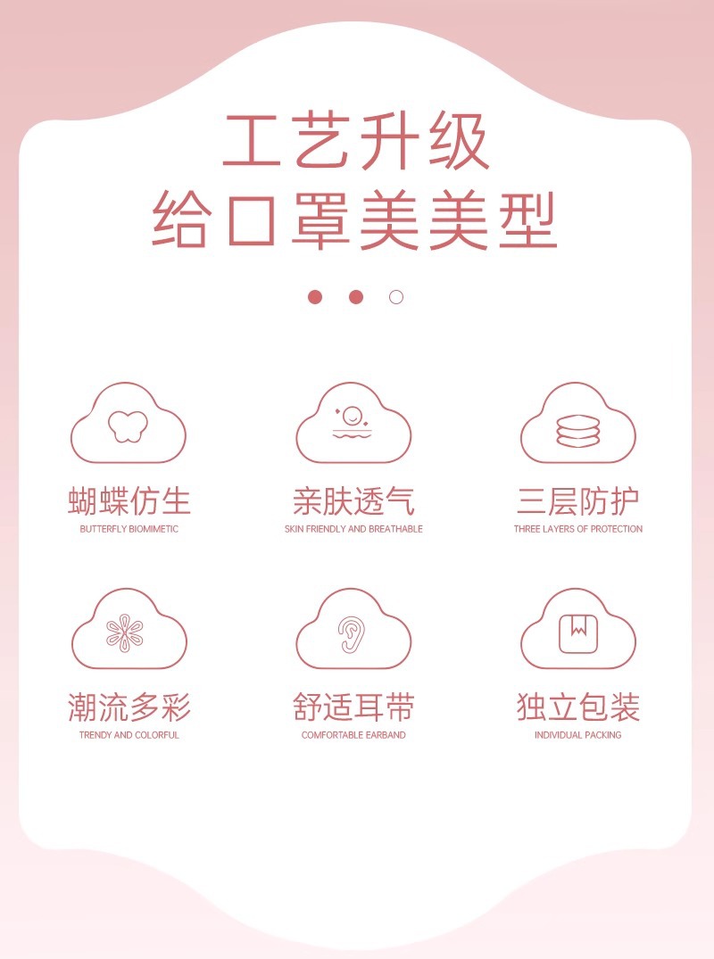 大版蝴蝶形一次性口罩女高颜值波浪形v脸口罩加大显脸小不勒耳