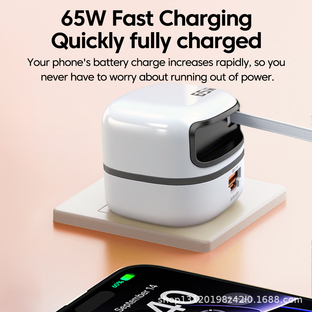新款伸缩线65W快充充电器 便携式折叠脚小体积随身充