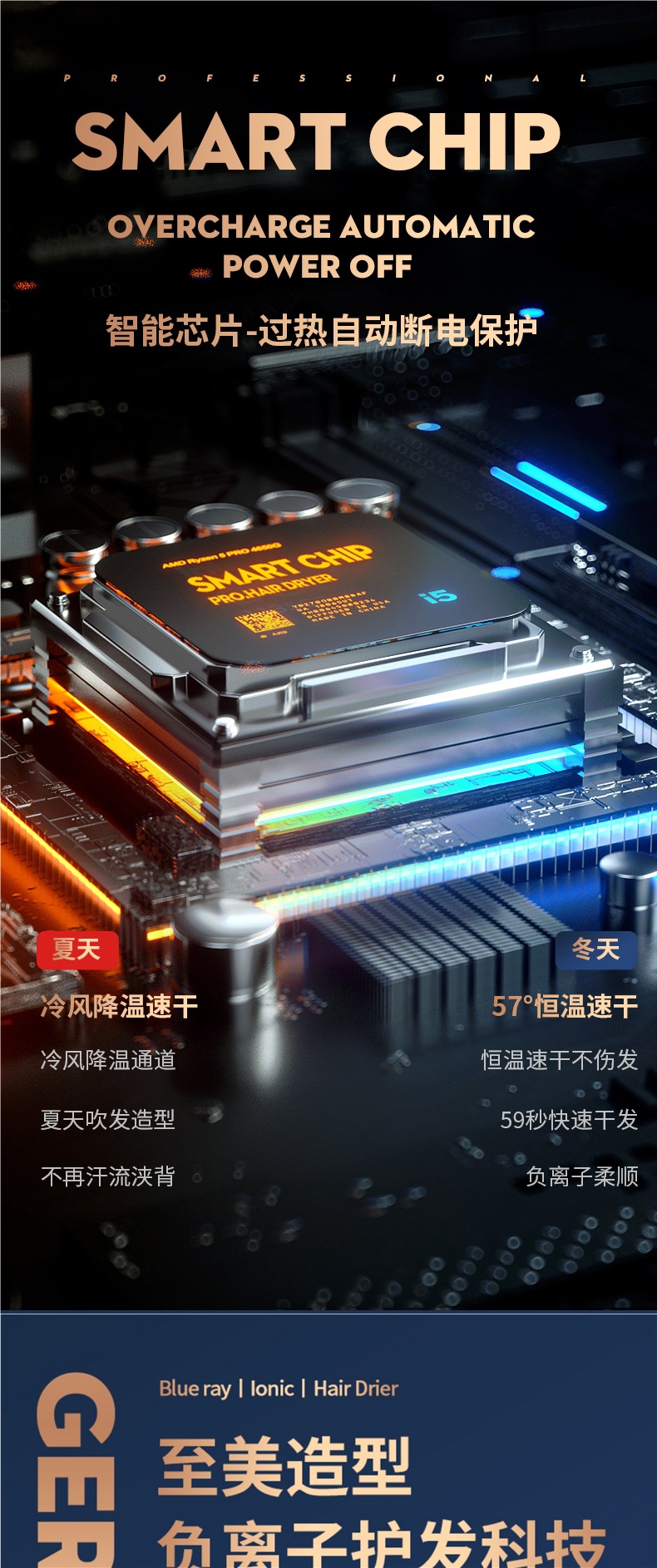 美容室専用ヘアドライヤー 理容室 ハイパワー 家庭用マイナスイオンヘアケア 速乾 3プラグ 温冷ドライヤー