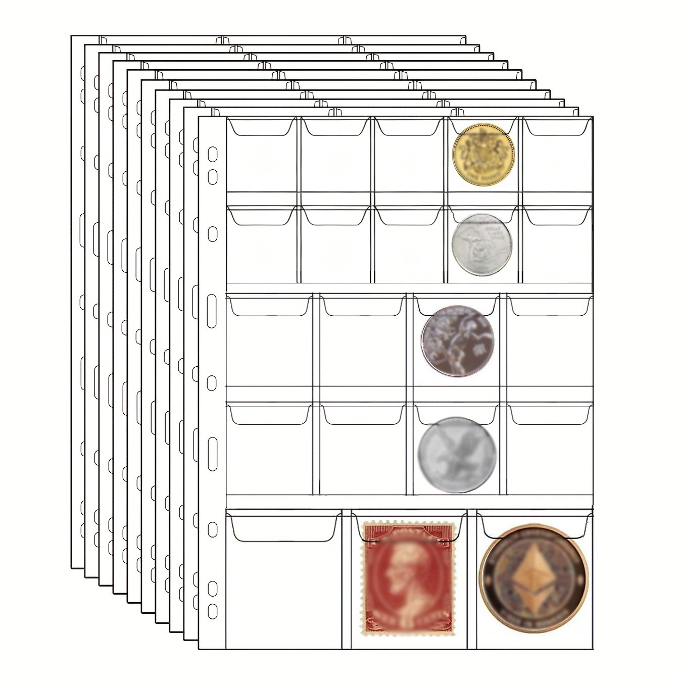 クロスボーダー国際標準穴9穴コイン切手コレクション内ページ12格20格30格42格収納冊