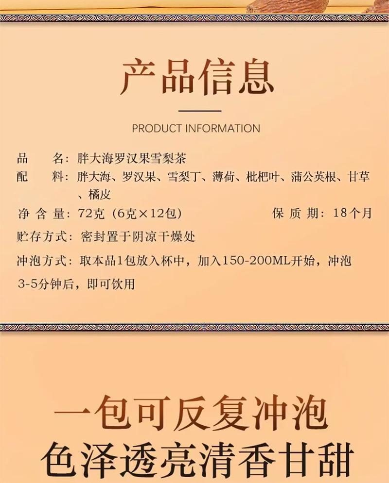 太った海の羅漢果雪梨茶72g袋に入っています。