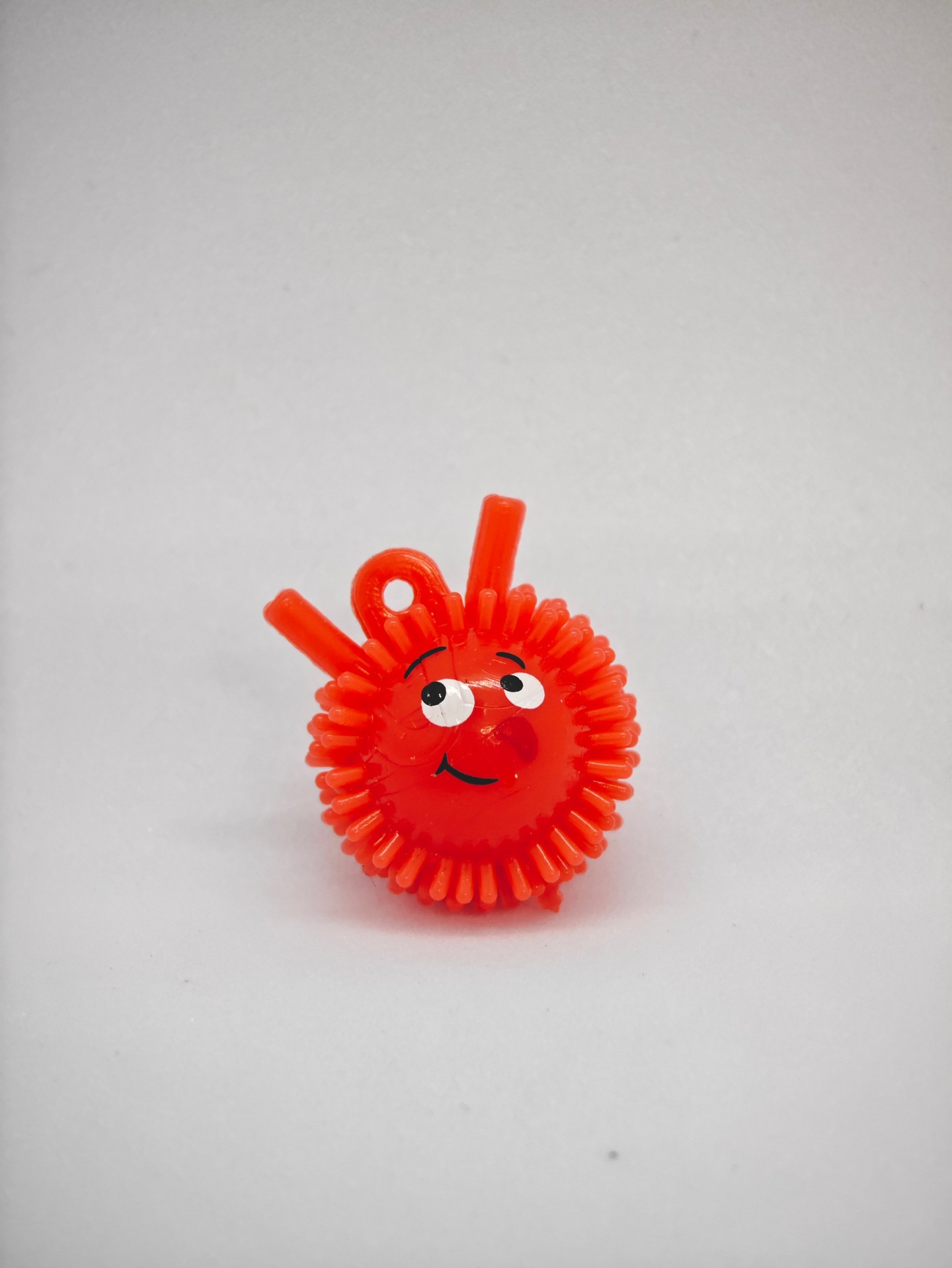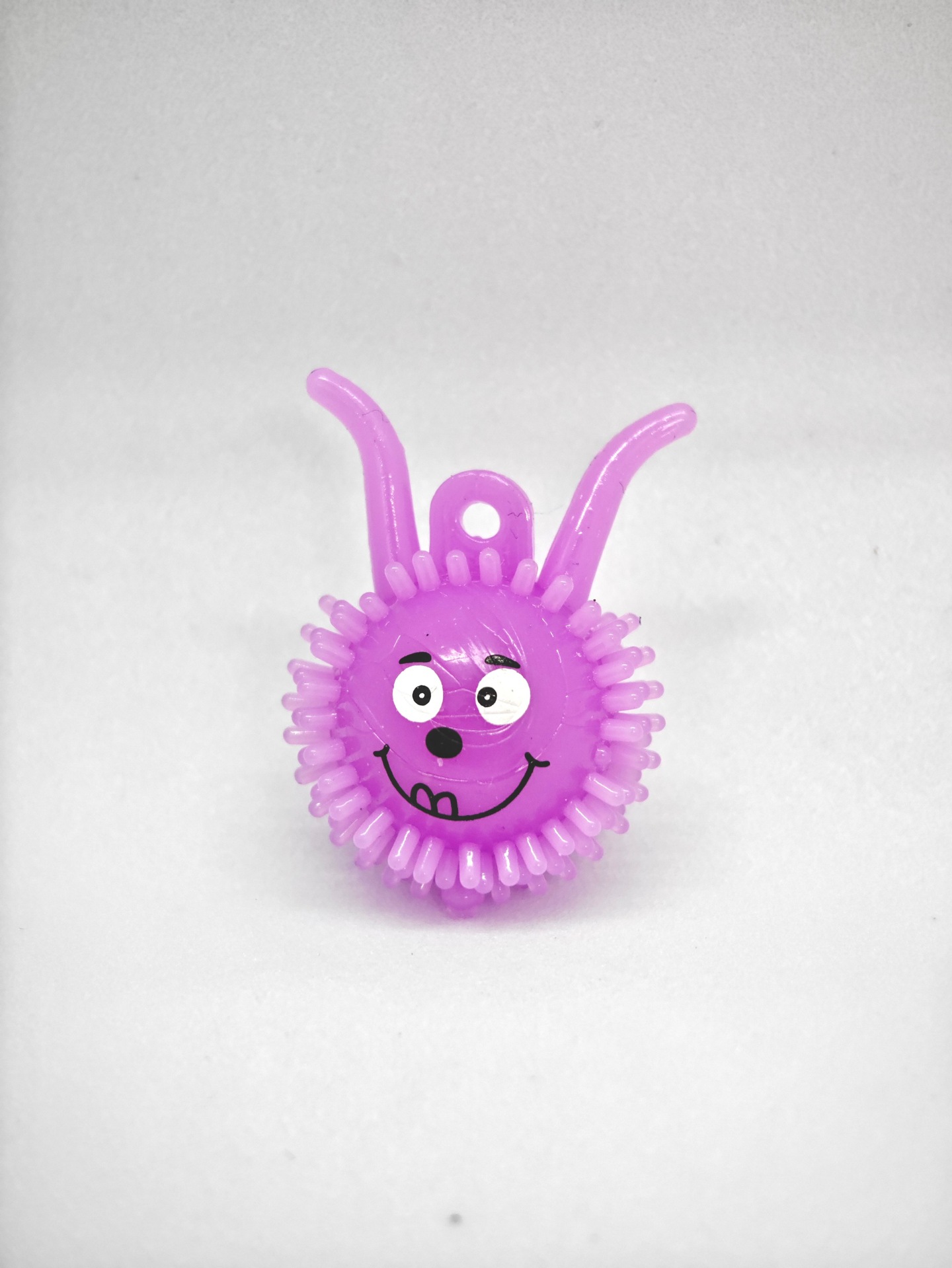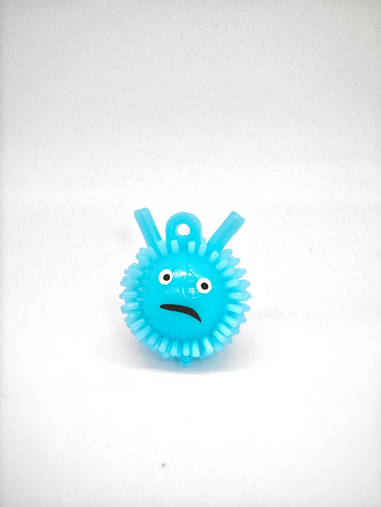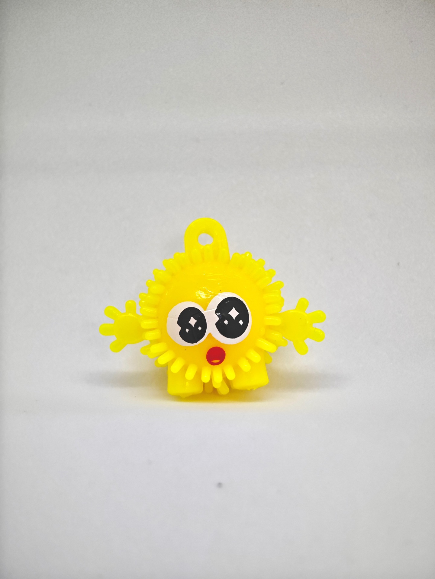 減圧発光のひよこの毛玉をつまんで音を立てます。