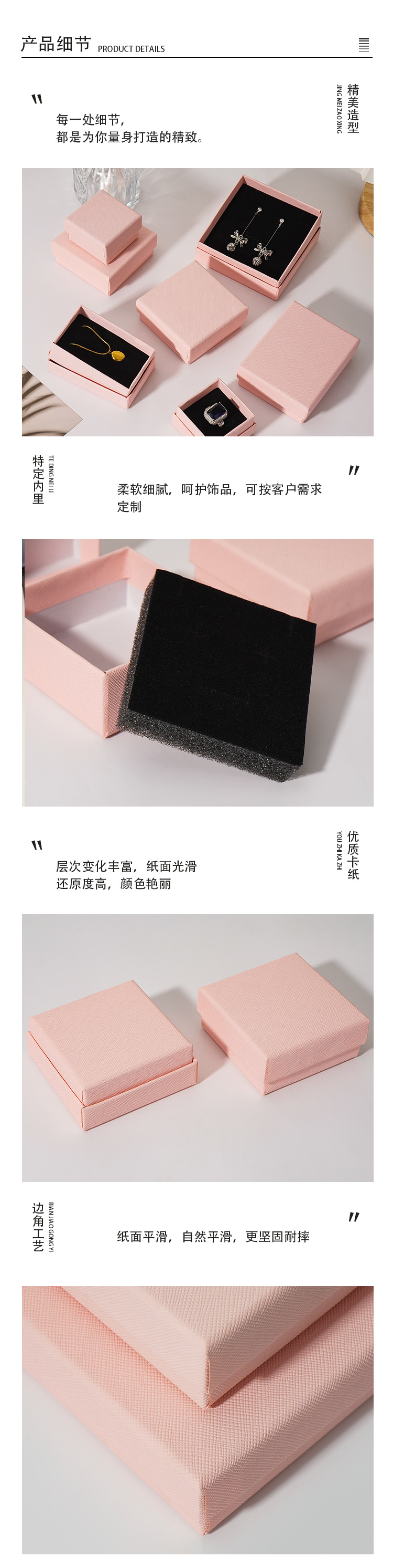 工場卸売 テクスチャ加工 天蓋式 ジュエリー包装箱 アクセサリー収納紙箱 ネックレス ブレスレット リングボックス 在庫あり