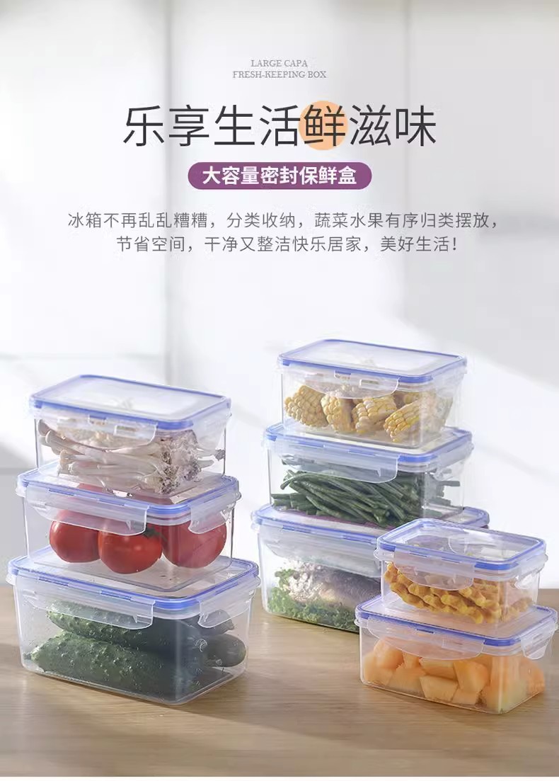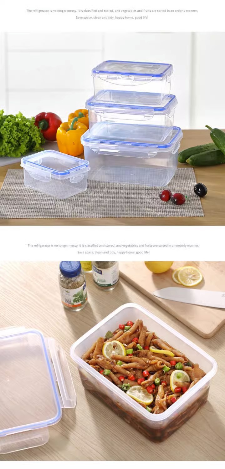 キッチン冷蔵庫蓋付き長方形クリッパー透明密封電子レンジ耐熱プラスチック食品ボックスフルーツ収納ボックス
