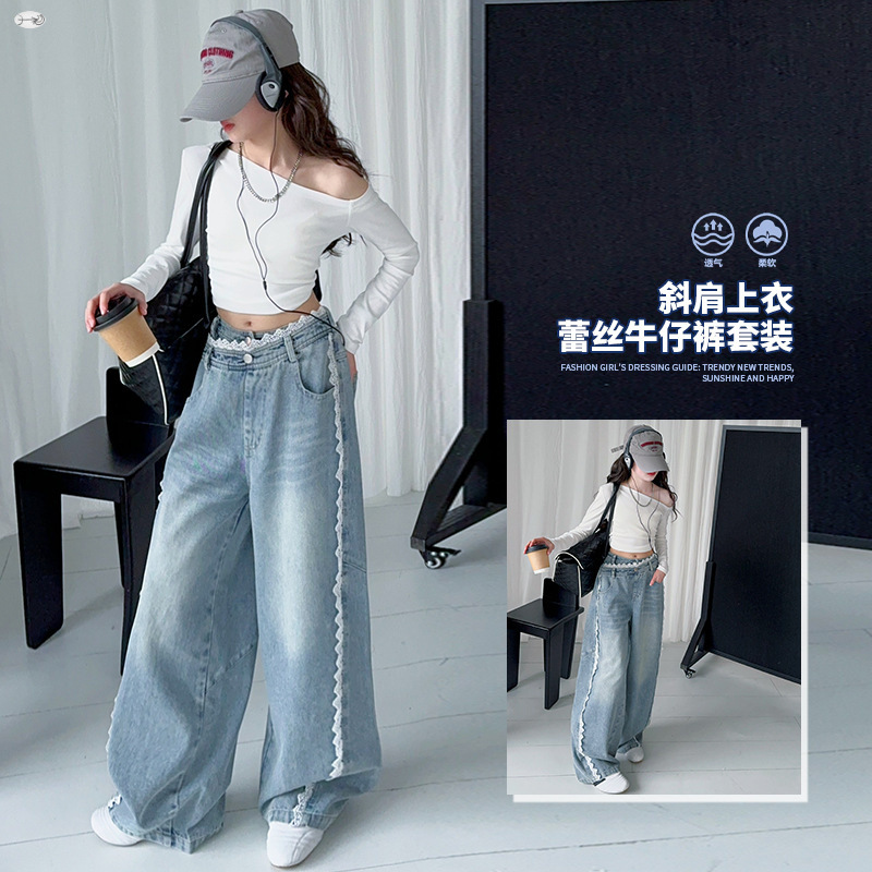 ブルージーンズ[単品],ホワイトイレギュラーショートT【単品】,黒イレギュラーショートT-[単品]