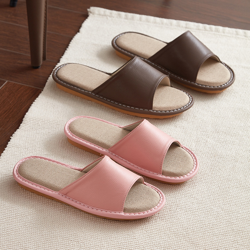 海寧真牛皮スリッパ女性の新型室内滑り止め通気耐摩耗性亜麻スリッパ牛筋底男室内
