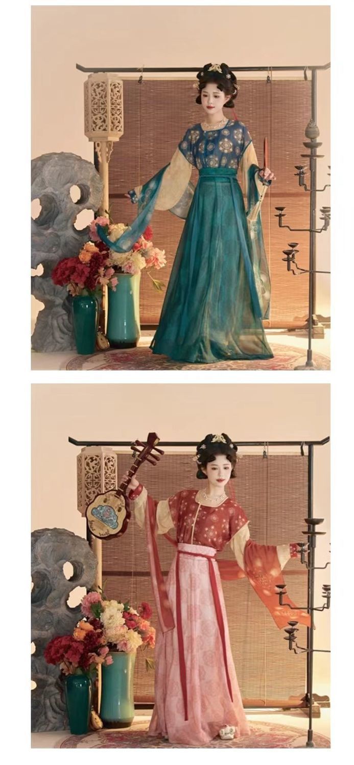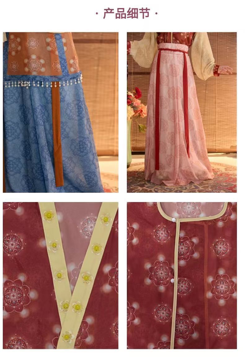 オリジナル【桃色柳緑】復元唐製丸首衿灯籠ズボン百フリルスカート女2025春夏新作