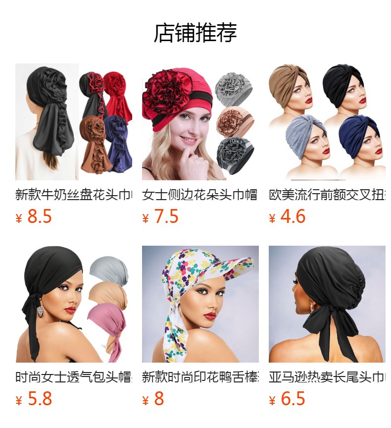 跨境热卖按扣款弹性头巾帽 围巾包头帽 厂家直销