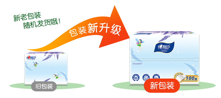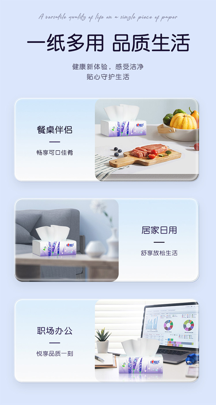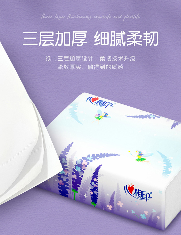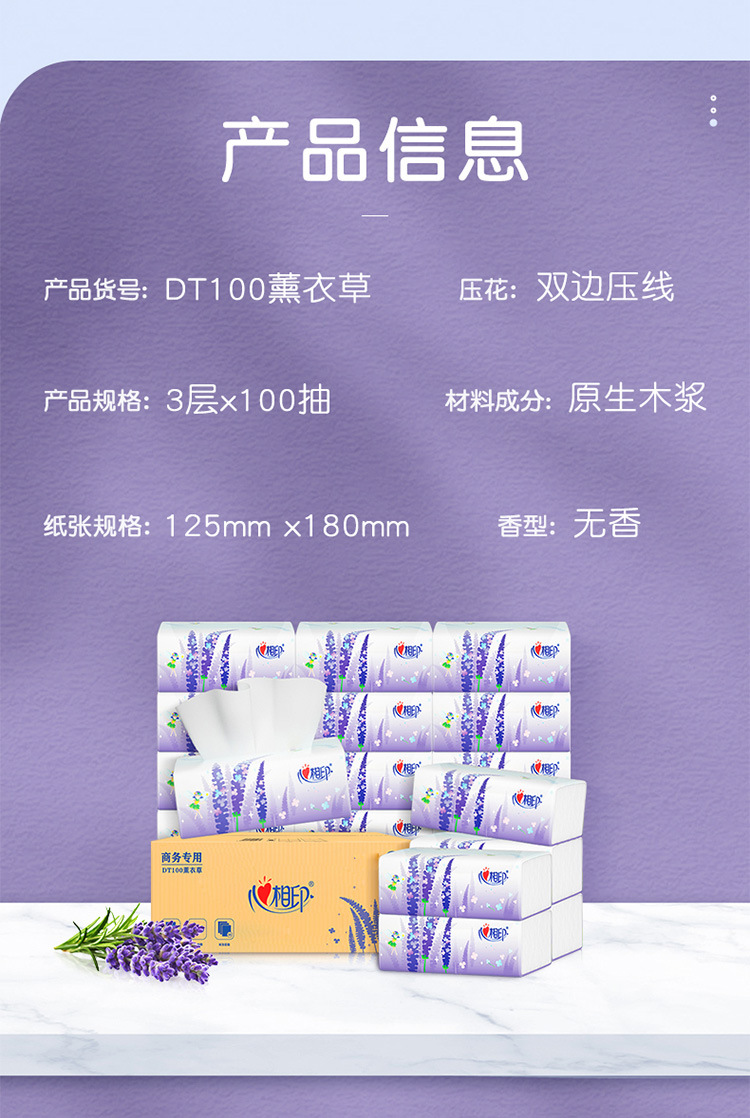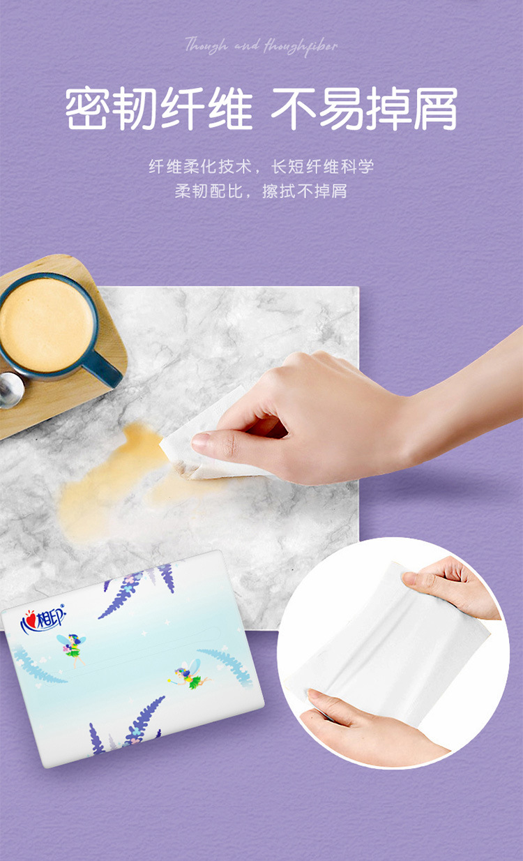 心相印ラベンダーティッシュ家庭用ホテルのティッシュトイレットペーパーナプキンナプキン3階100枚