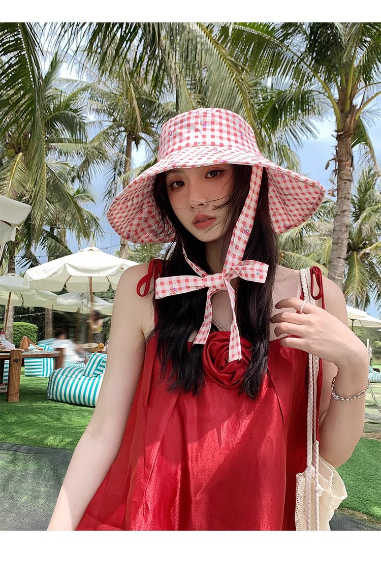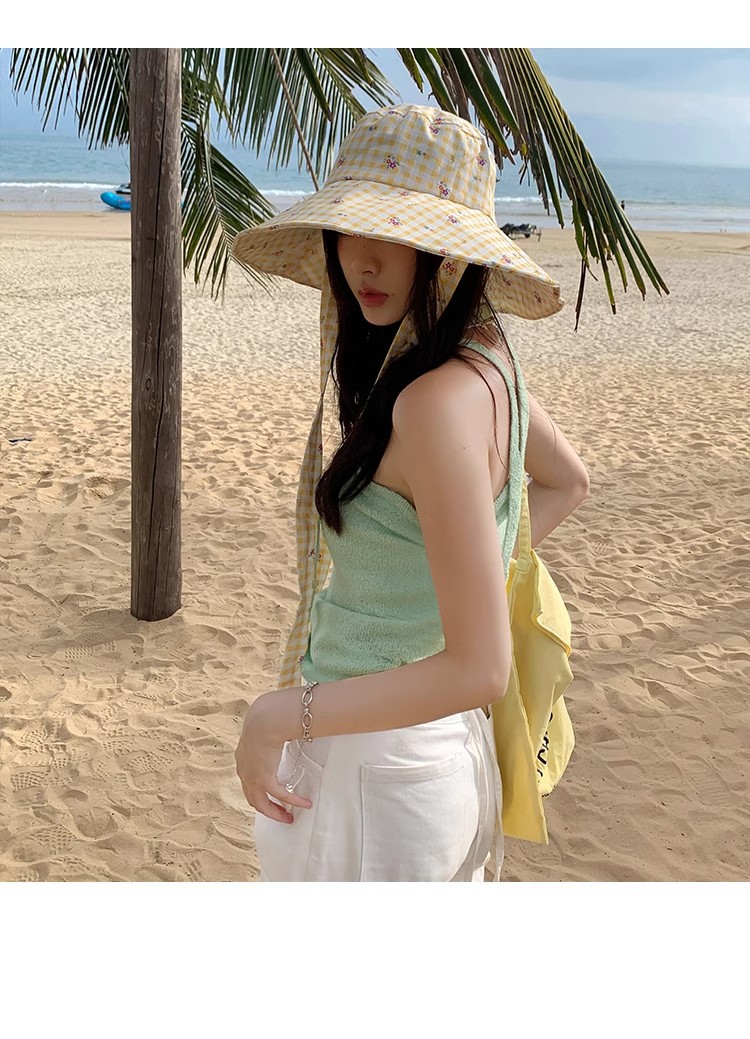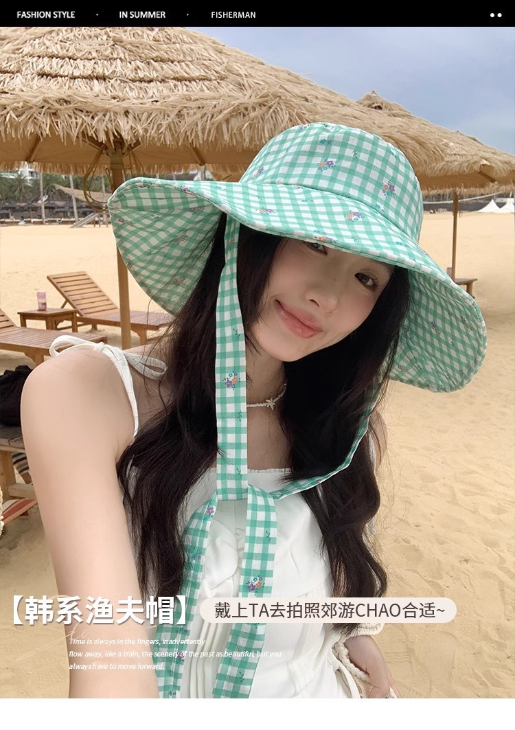 夏の小清新な日焼け止めは漁師帽の大きなつばの花の日よけの帽子を持っています。