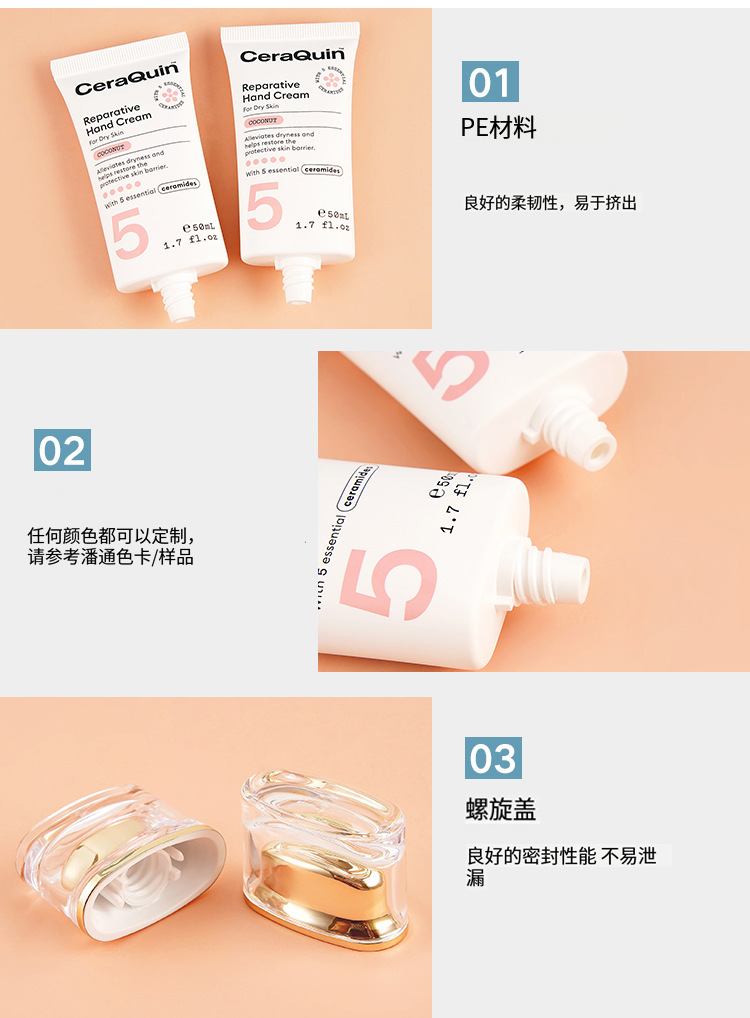 化粧品洗顔料PEホース日焼け止めクリームアイソレーションハンドクリームブランクホース包装材楕円蓋
