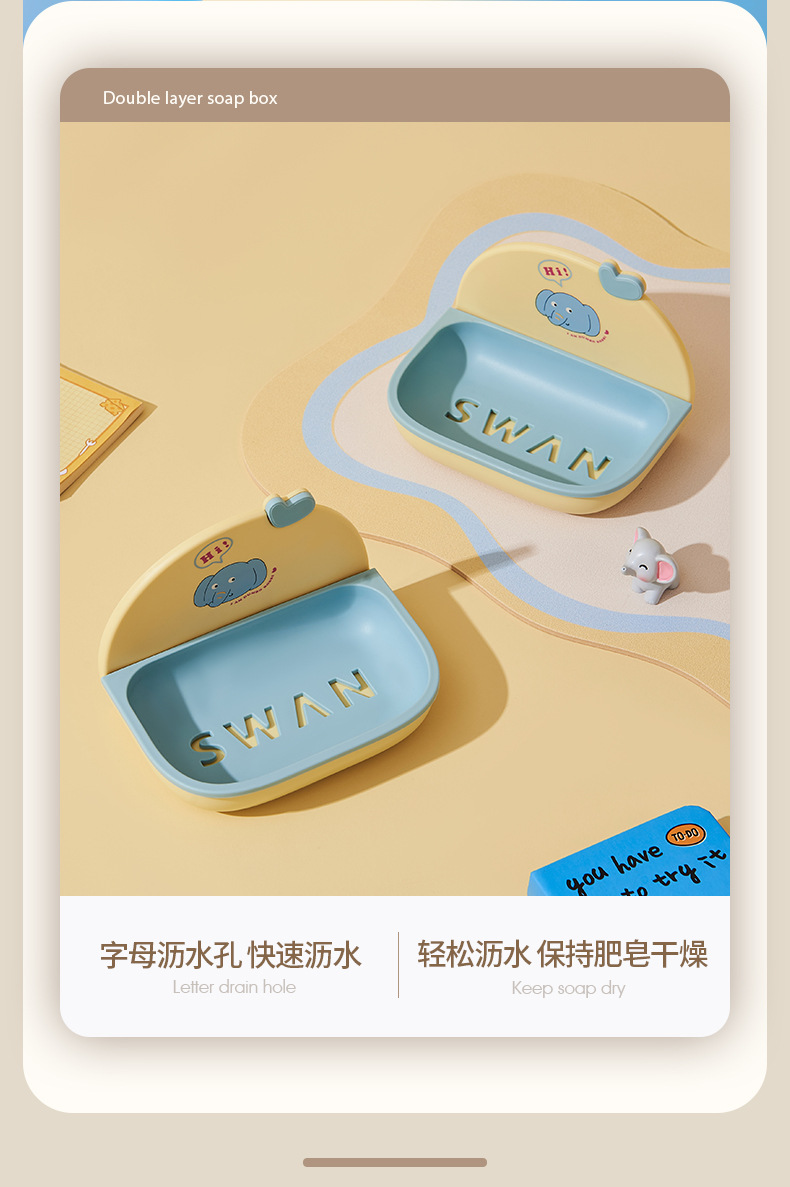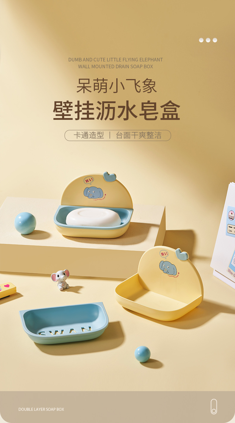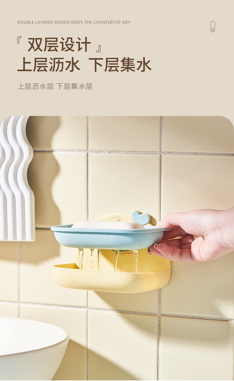 漫画石鹸ボックスバスルーム家庭用壁挂けアイデア水切り石鹸ボックストイレ二重かわいい石鹸ボックス置物棚