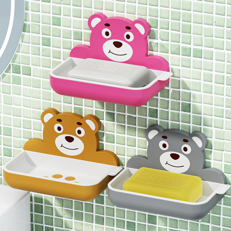 熊の漫画の二重の石鹸の箱の壁掛けの痕跡のない石鹸の収納の箱の浴室の物置の箱は水の石鹸の箱を切って代行します。