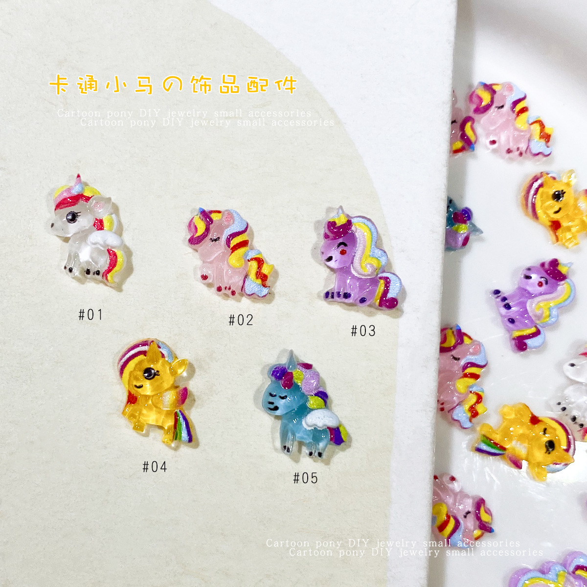新しいマイリトルポニー漫画ネイルアートアクセサリーかわいい立体リトルユニコーン樹脂ダイヤモンド diy ウェアラブルネイルアクセサリー