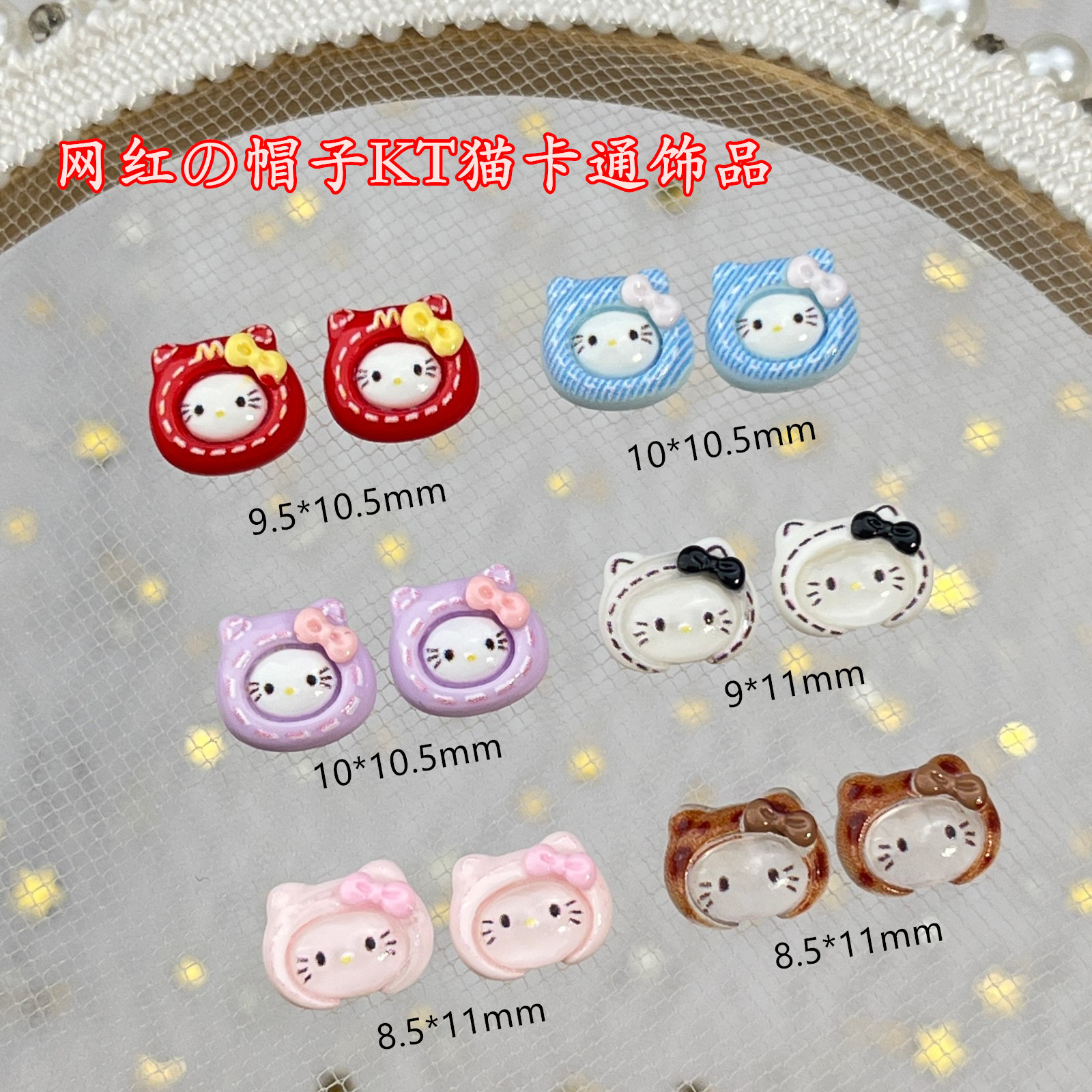 戴帽子KT猫卡通美甲饰品可爱立体蝴蝶结凯蒂猫树脂diy穿戴甲配饰
