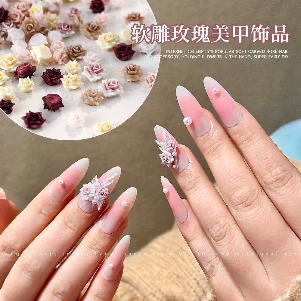マニキュアローズジュエリーフラワーデコレーションミックスワインレッド彫刻ブルーミンググラデーションウェアラブルネイルミニ立体アクセサリー