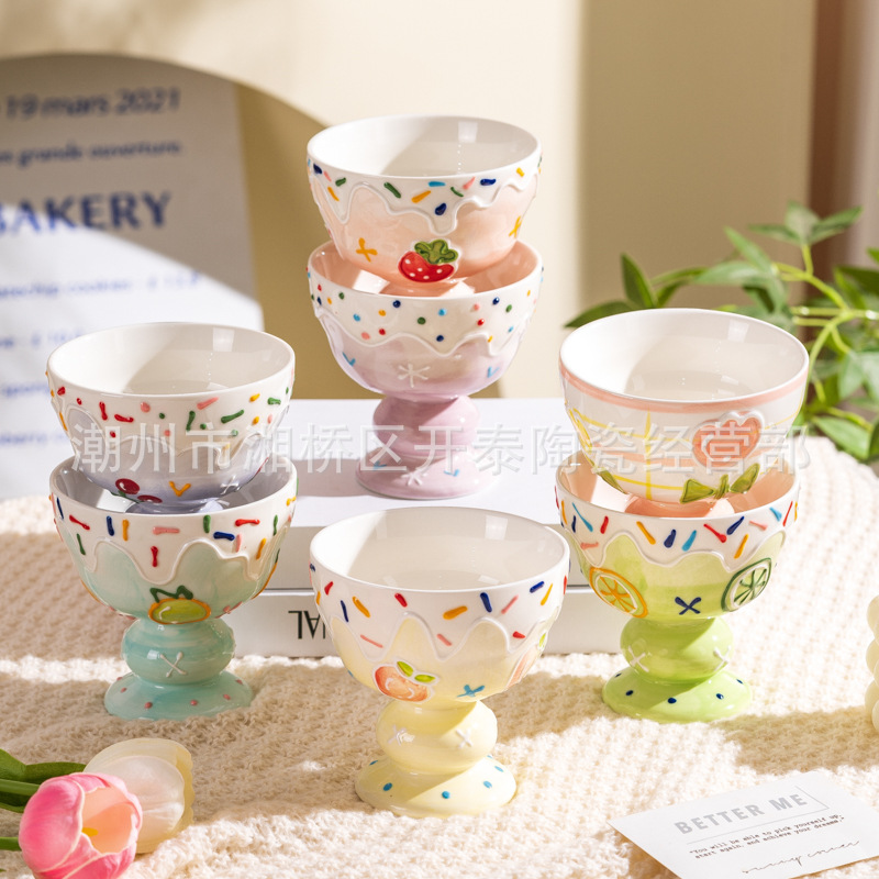 手绘浮雕甜品杯可爱创意陶瓷杯早餐杯牛奶燕麦杯高颜值大容量杯子