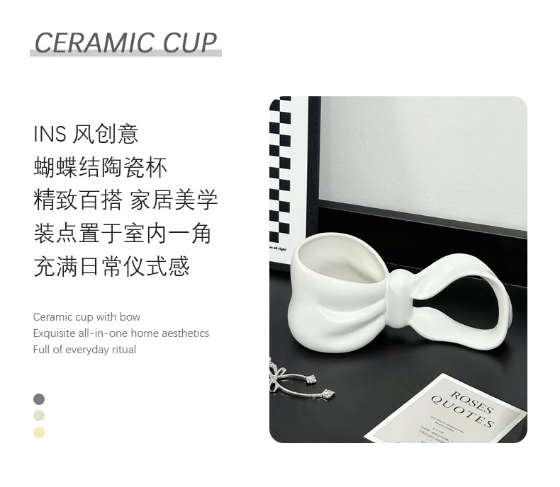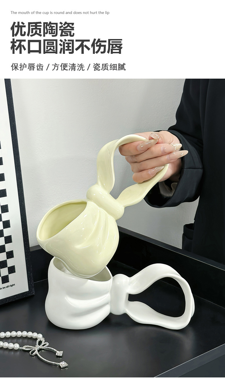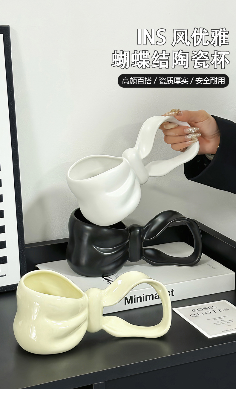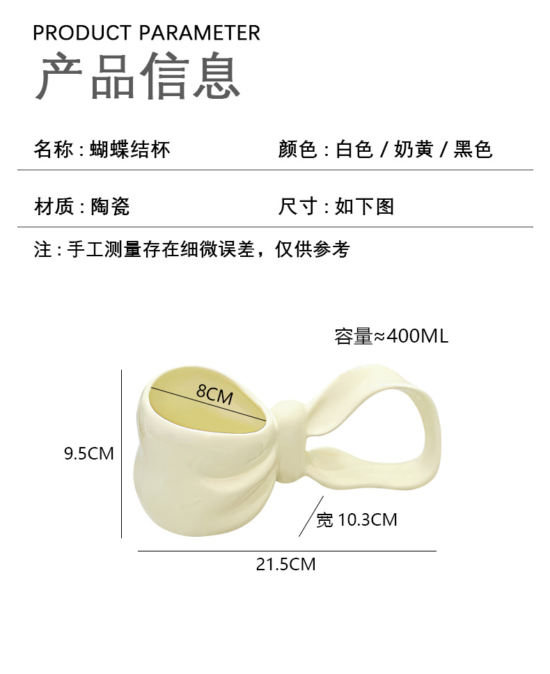 蝴蝶结长柄杯创意个性礼物杯送闺蜜女朋友感咖啡杯子陶瓷水杯