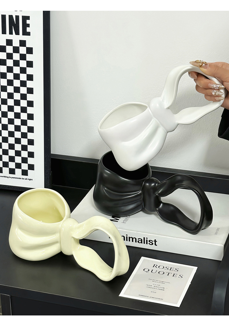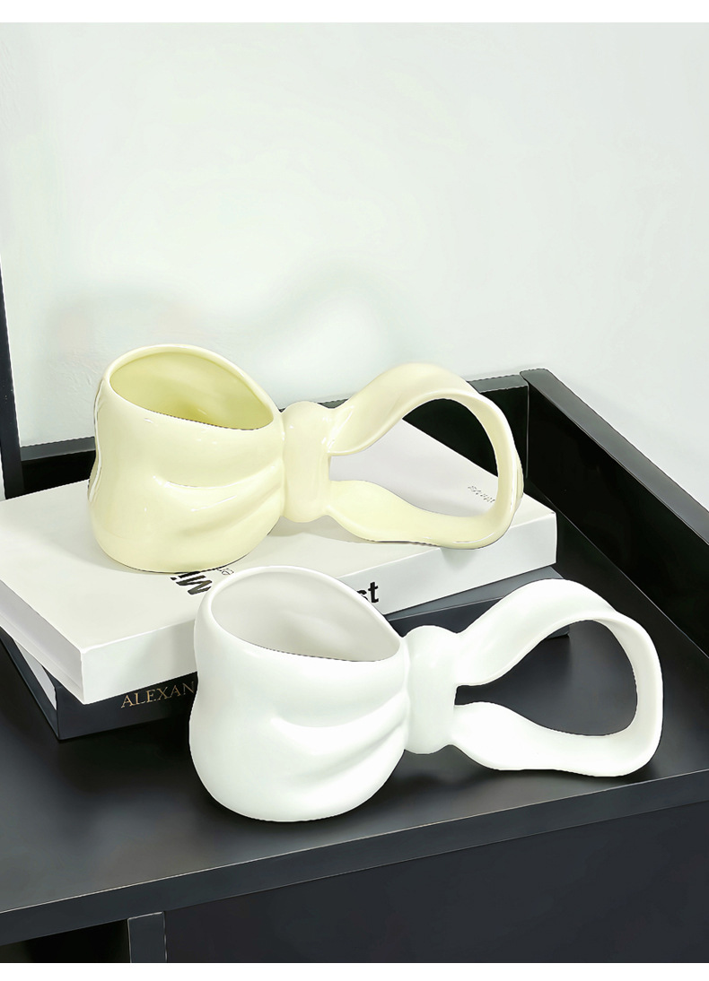 幻の蝶結びの取っ手のコップの長い柄のマグカップの大容量のコーヒーカップの朝食の陶磁器の杯の高級な贈り物