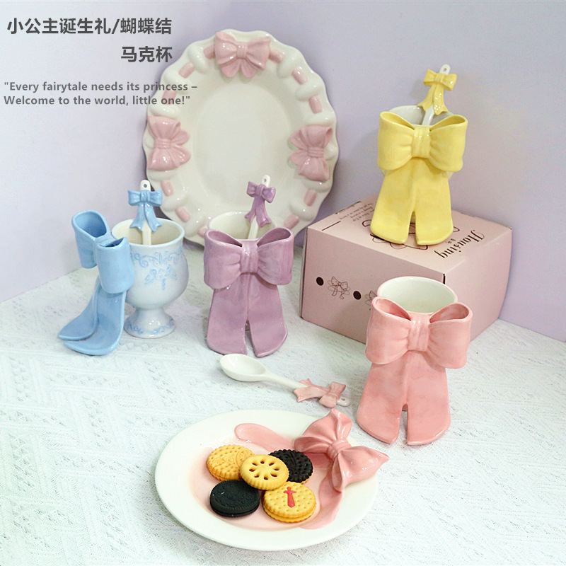 リトルプリンセス 蝶結びマグカップ 誕生日プレゼント コーヒーカップ エンボス加工 セラミックカップ 家庭用ギフト 水筒
