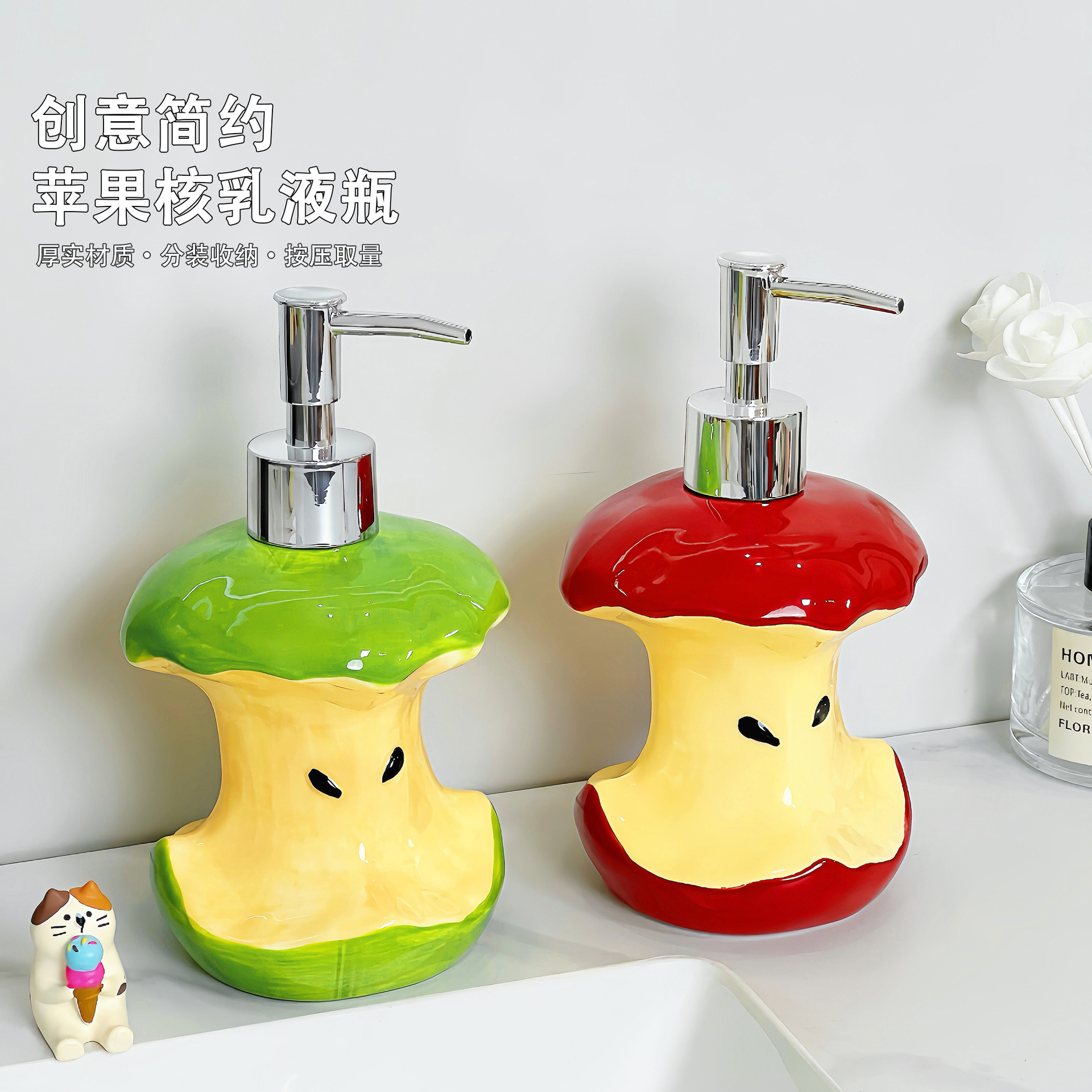 クリエイティブアップルローションボトル家庭用バスルームプッシュ式手指消毒剤シャンプーボトル高価値セラミックボトル