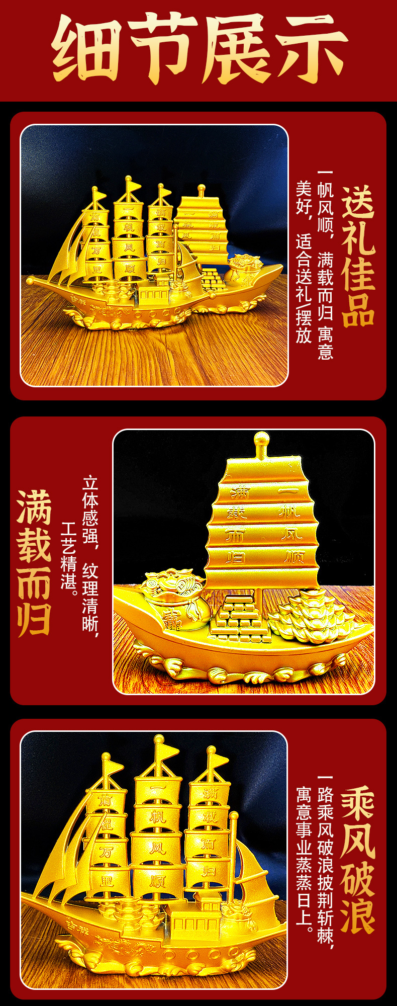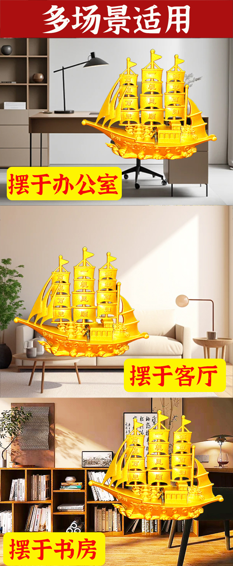 荷物を積んで帰る~金塊船飾り【宝庫付き】,明るい未来 - 双龍船の装飾品 [小さな家付き]