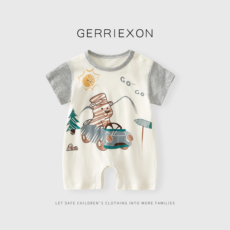 赤ちゃんの夏服の純綿の薄い新生児の半袖のワンピースの服の夏の男の子の服の超萌えの洋気は服の潮に登ります。
