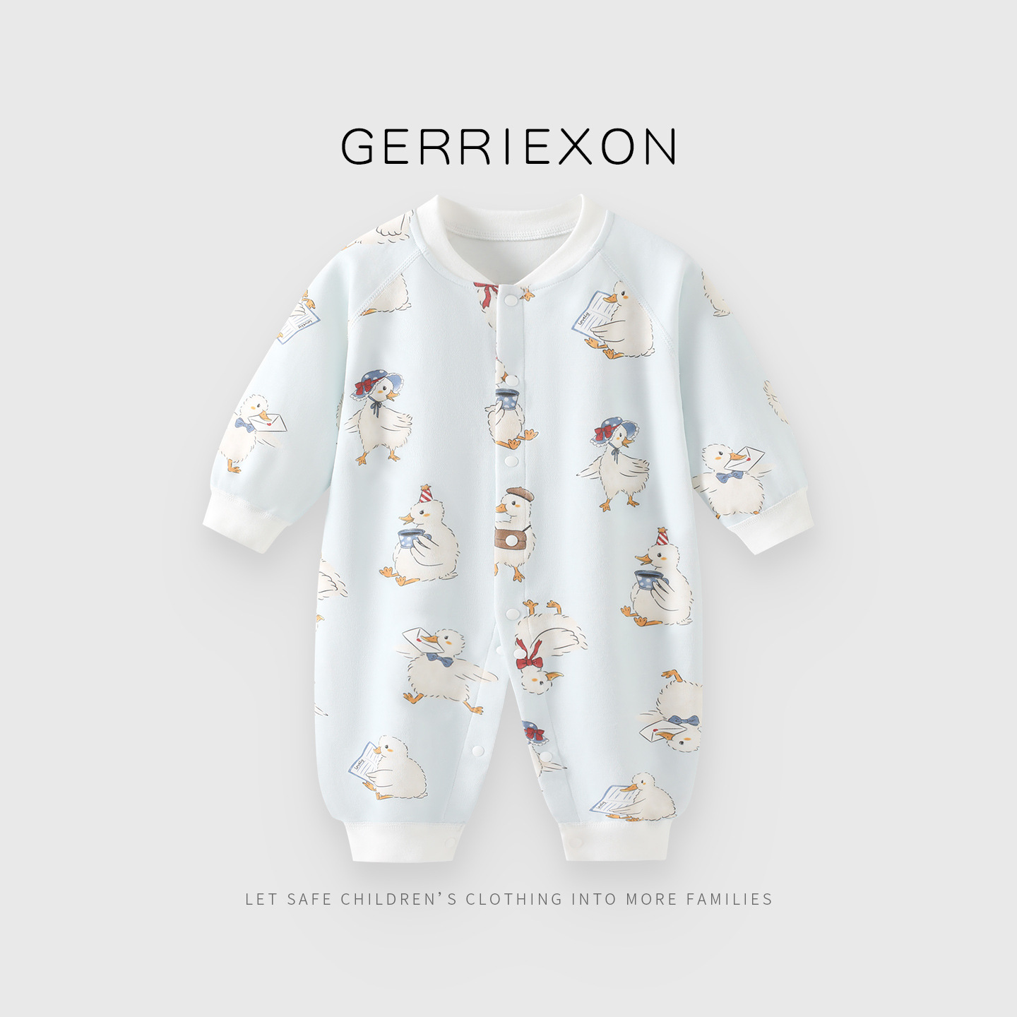 婴儿长袖连体衣纯棉A类无骨哈衣秋季新款男女宝宝休闲可爱爬爬服